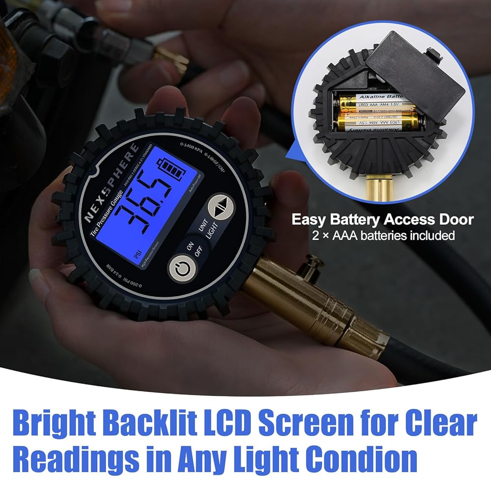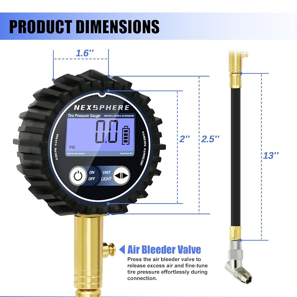 Promotes Safety & Fuel Efficiency: Proper tire pressure is key to safe driving and optimal fuel economy. By ensuring accurate pressure levels, the NexSphere Tire Pressure Gauge helps prevent premature tire wear, enhances traction, and reduces the risk of blowouts, keeping you safe on every journey.