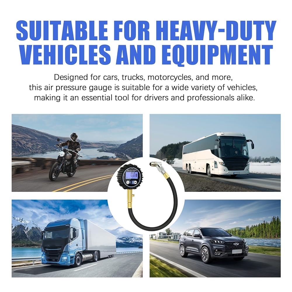 200 PSI Digital Tire Pressure Gauge – Heavy-Duty Air Pressure Gauge for Tires, Accurate Digital Tire Gauge with LED Backlight, 360° Swivel Chuck for Cars, Trucks, Motorcycles & RVs