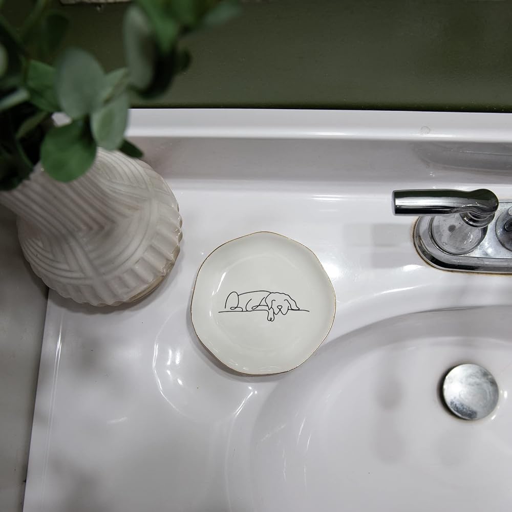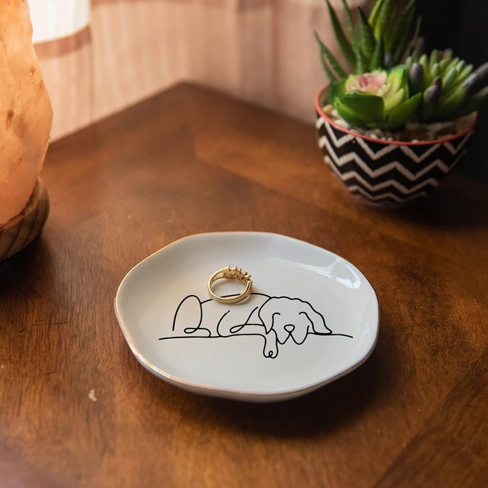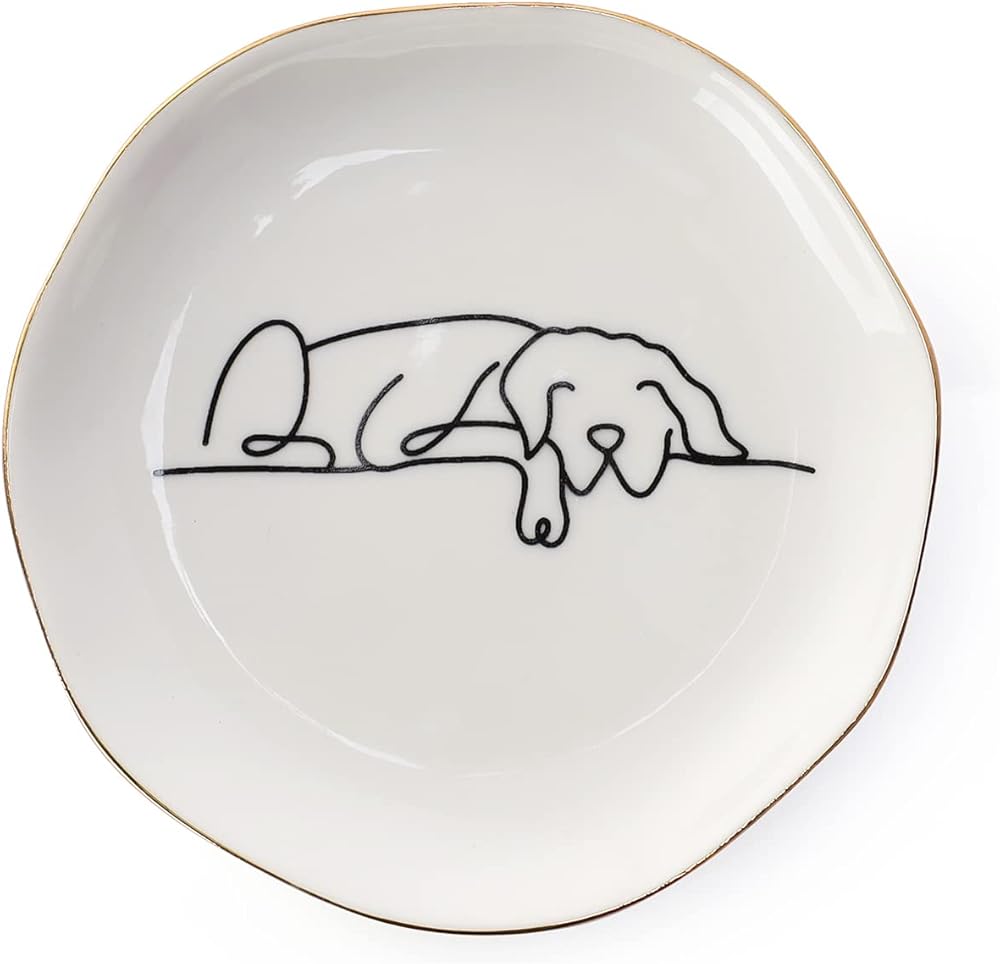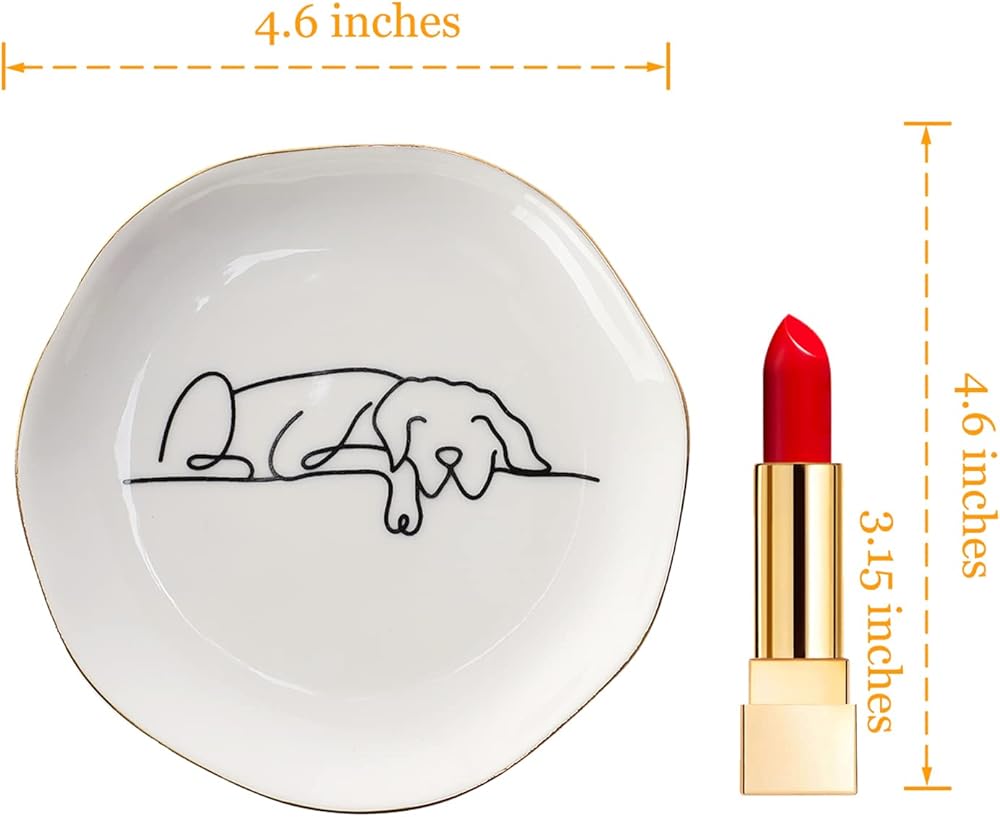 [Excellent Design and Refine Details] Crafted from great quality glazed ceramic with irregular round shape ring dish and gold trim,Well packed with white box.