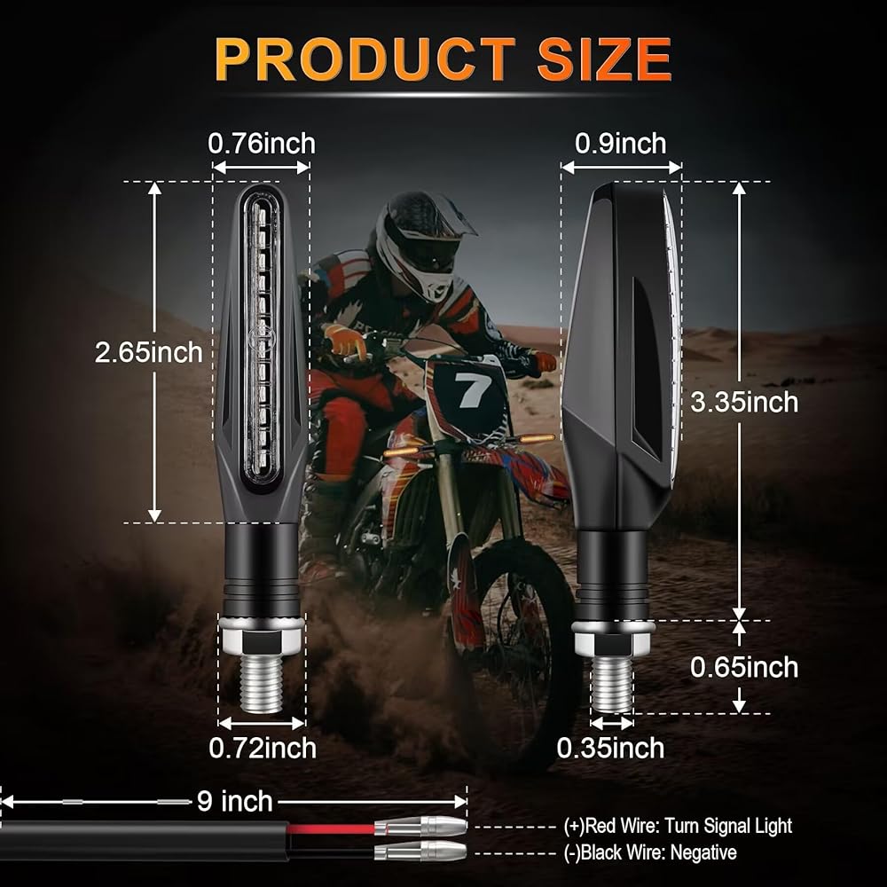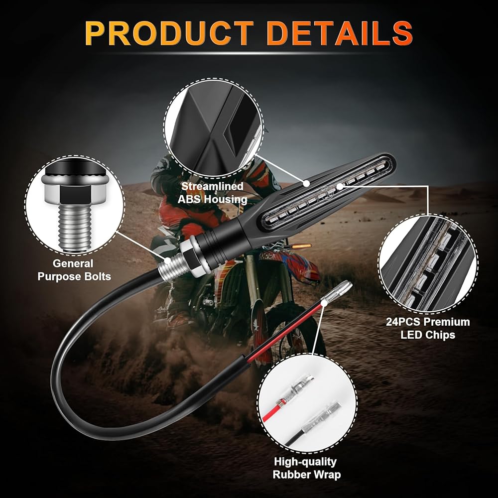 Buy with confidence: The package contains 4 motorcycle flowing turn signals indicator amber lights. Any issues or questions please feel free to contact us, we are always here to satisfy all of you.