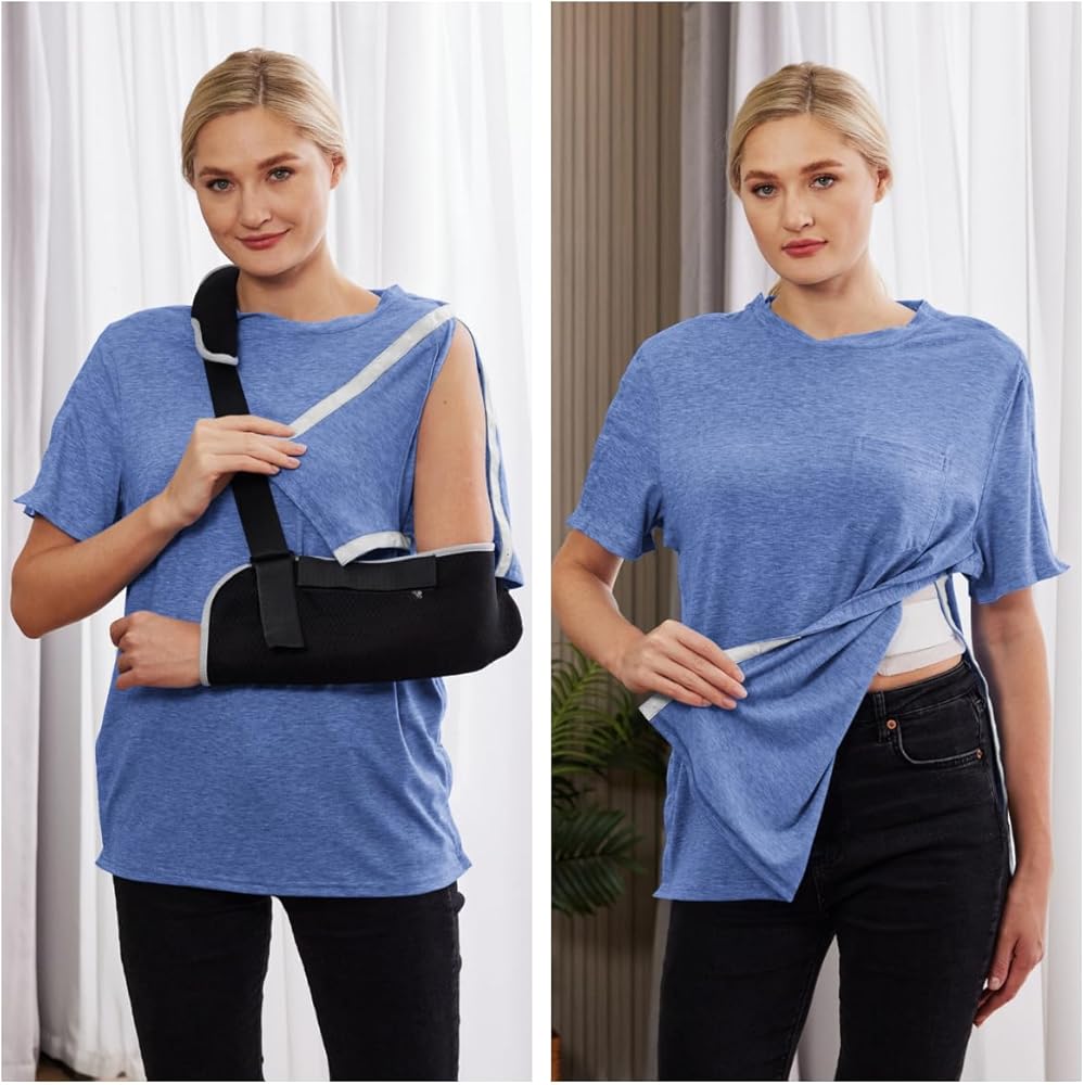 【Perfect For】This shirt has many uses including post shoulder surgery recovery, heart bypass, spine surgery, injured from Sports, Breast surgery recovery, physical therapy, Elderly, handicapped, anyone with limited mobility, etc.