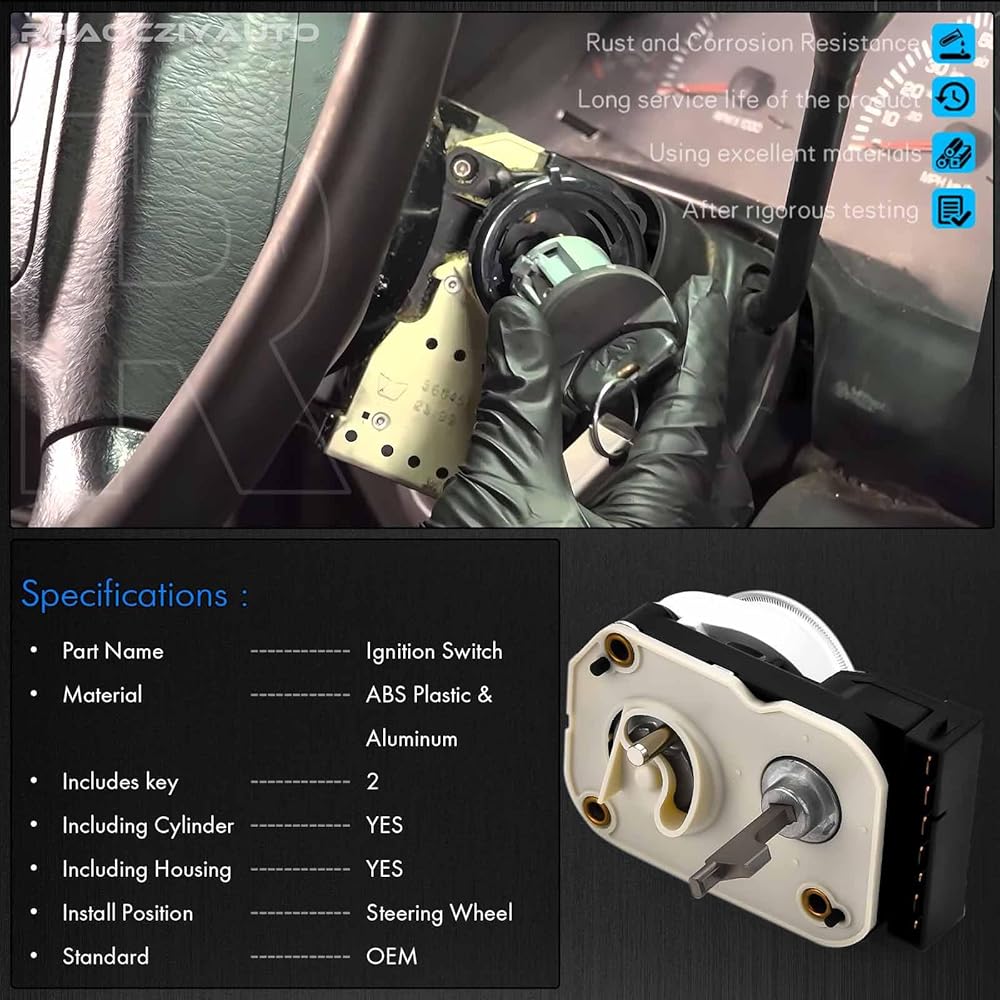 Product Function : The ignition switch lock assembly starts the engine, provides anti-theft protection, manages the vehicle's electrical system, and safeguards the battery and electrical components by detecting the key position