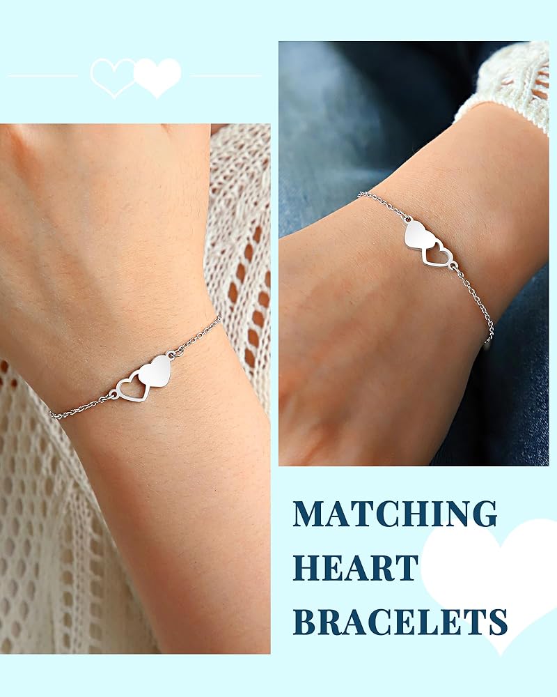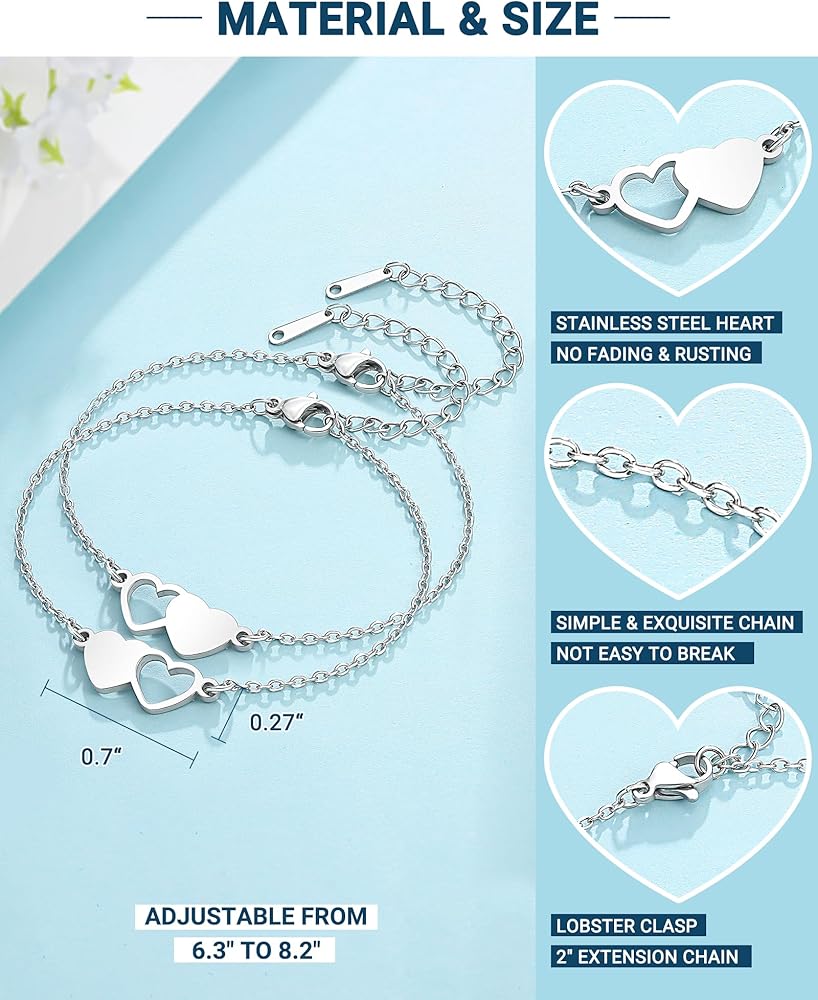CHAIN BRACELET: Our bracelet is made of stainless steel & silver plated heart charm. It's sturdy and strong, high polished, not easy to fade and rust. Hypoallergenic and suitable for any skin.