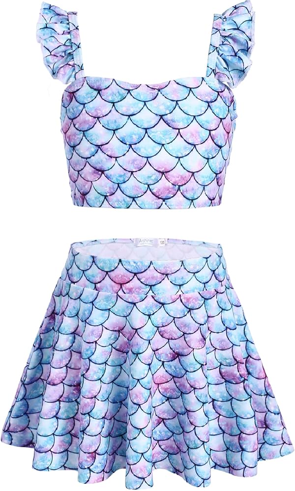 Scene: Girls tankini set have a variety of print styles, such as mermaid style, Hawaiian beach style, suitable for vacation, summer beach, pool party, photograph etc.