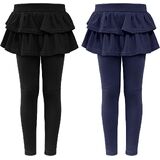 Unique Girls Pants Design: Leggings for girls with two layers ruffled tutu skirt don't flip and run, perfect to take on and off, cute and fashionable