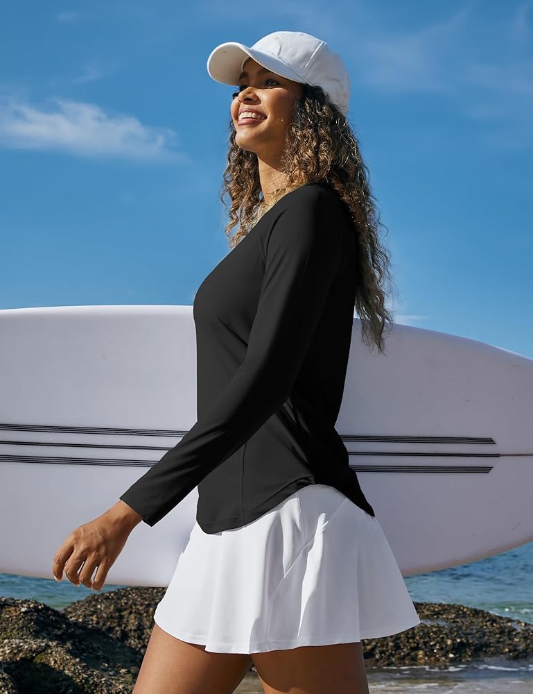 UV Protection - Do you want to enjoy outdoors without getting affected by UV rays? Putting on SGS-certified IUGA Rash Guard for Women with a UPF 50+ fabric rating, the SPF shirts for women long sleeve shield your skin from dangerous UVA/UVB rays, with a UV blockage rate of over more than 99%.