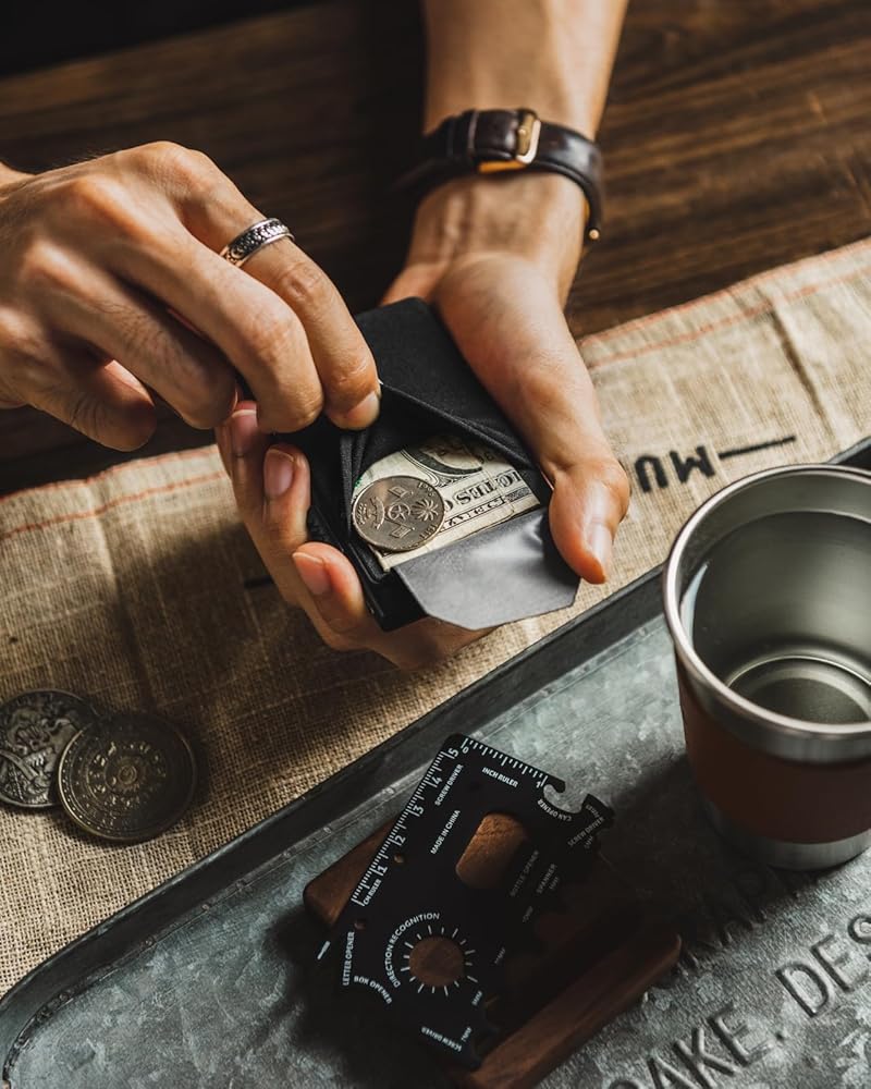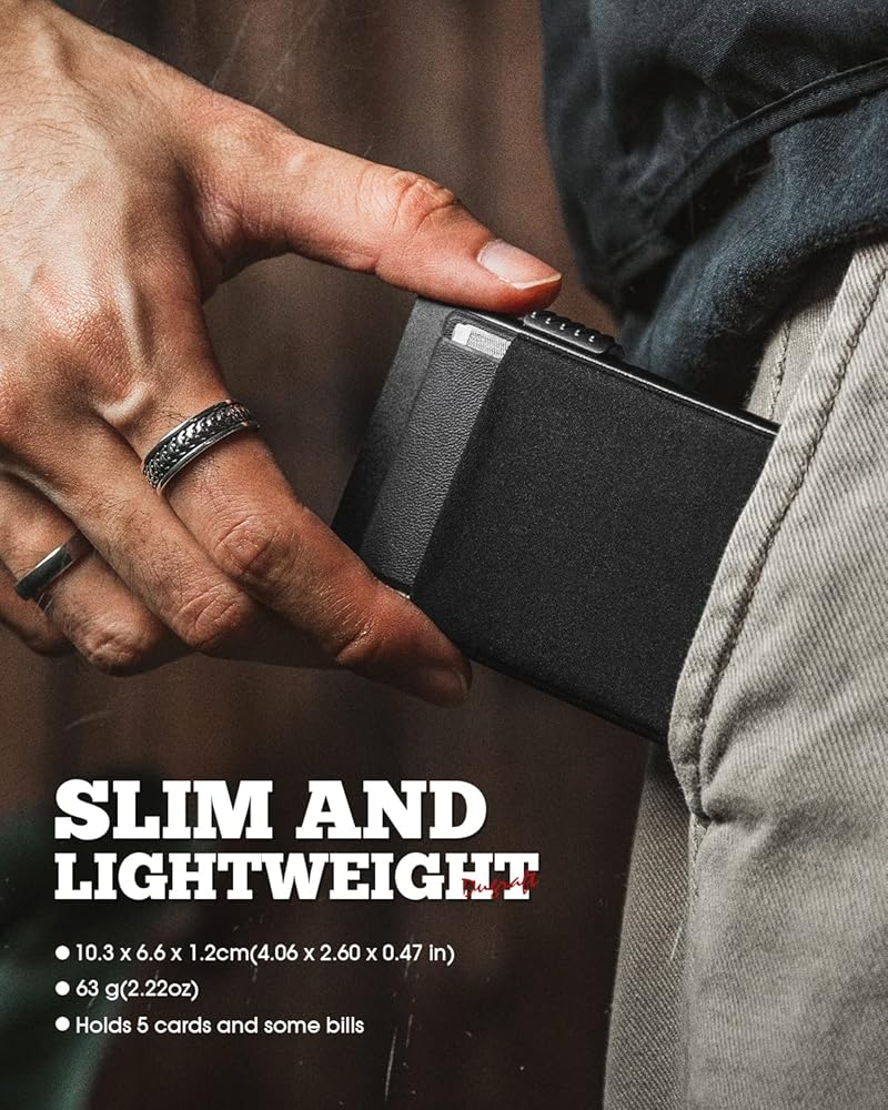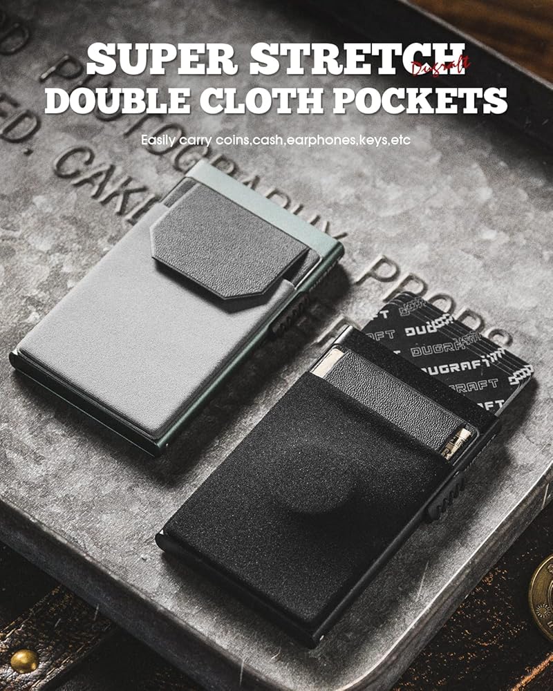 💳𝗨𝗟𝗧𝗥𝗔-𝗦𝗟𝗜𝗠 𝗗𝗘𝗦𝗜𝗚𝗡 - DUGRAFT slim pocket-sized metal Card Holder Wallet for Men is perfect for fitted trousers or front and back pockets to carries around, say goodbye to the traditional thick wallet. Thin design 𝗗𝗶𝗺𝗲𝗻𝘀𝗶𝗼𝗻: 𝟰.𝟬𝟲 𝘅 𝟮.𝟲 𝘅 𝟬.𝟰𝟳 𝗶𝗻𝗰𝗵𝗲𝘀; 𝟮.𝟮𝟮 𝗼𝘂𝗻𝗰𝗲𝘀. Carry your valuables with compact precision that doesn't distract from your look with this wallet for men.