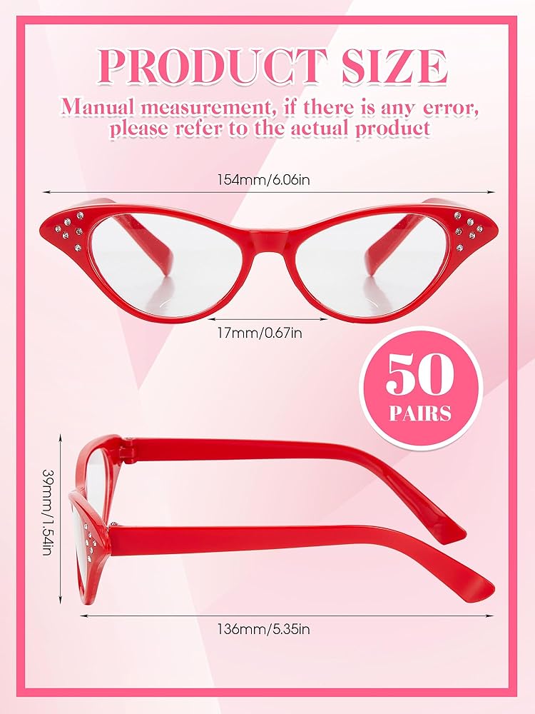 50S Vintage Look: our glasses for women costume with charming cat eye frame design, are full of retro atmosphere, and the corner part is embellished with 6 glitter rhinestones, shiny and attractive, you will win a lot of compliments with these glasses