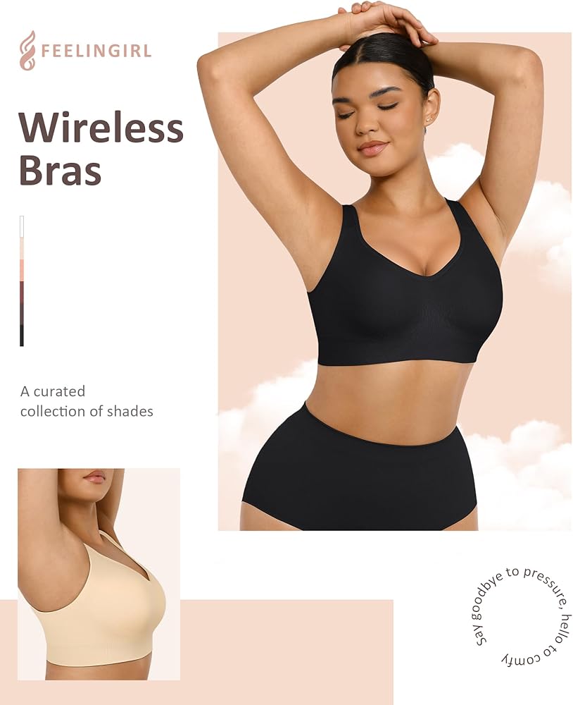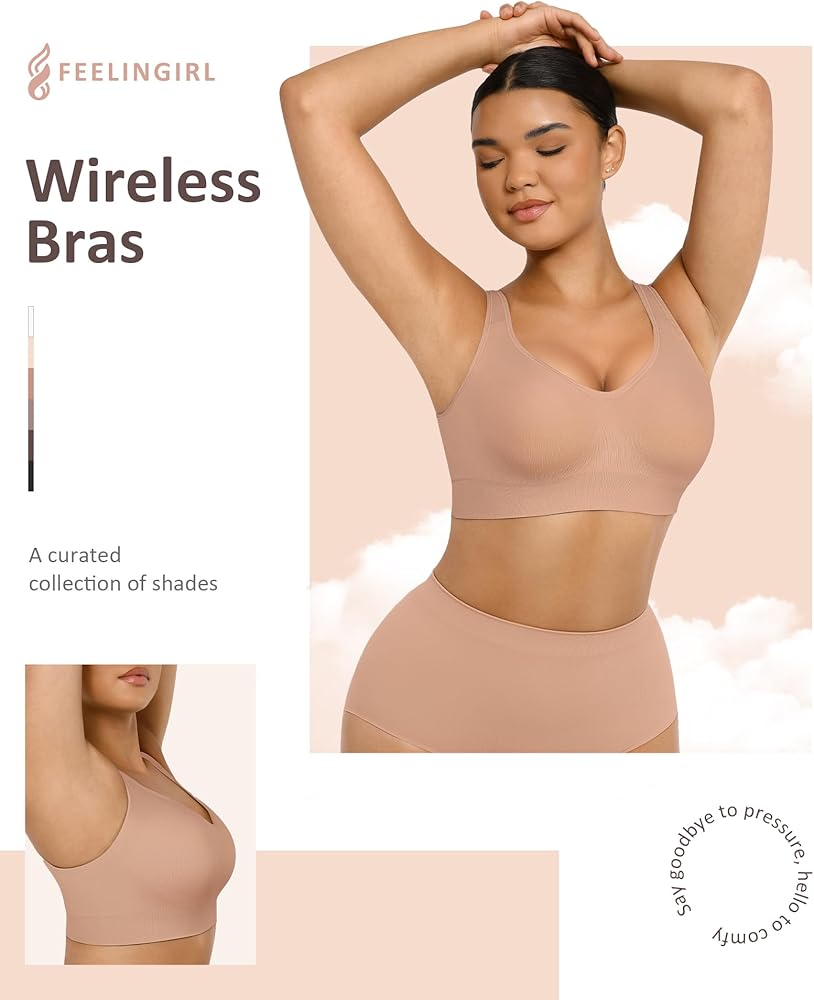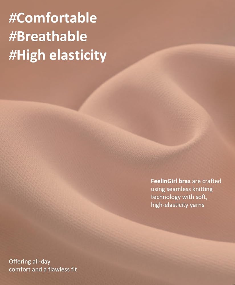 𝐁𝐮𝐢𝐥𝐭-𝐈𝐧 𝐂𝐮𝐩𝐬 𝐟𝐨𝐫 𝐒𝐞𝐜𝐮𝐫𝐞 𝐒𝐮𝐩𝐩𝐨𝐫𝐭: FeelinGirl bras features built-in cups that stay in place even during daily activities. Combined with a wire-free design, it reduces pressure and provides stable support while maintaining your natural shape.