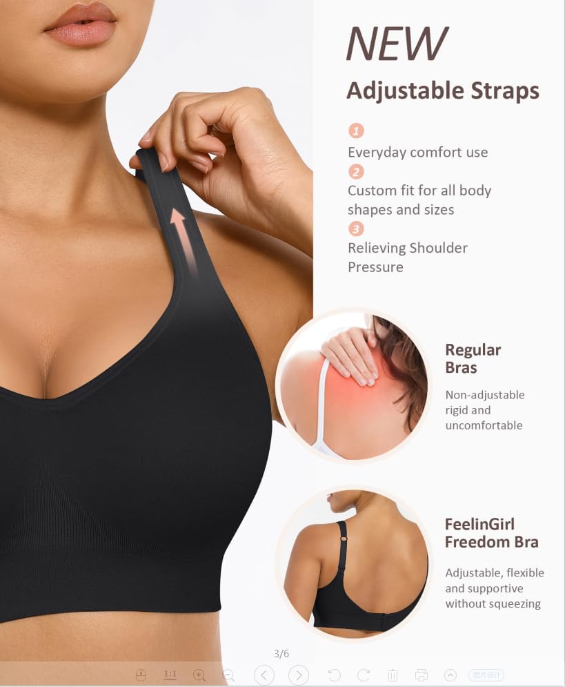 𝐀𝐝𝐣𝐮𝐬𝐭𝐚𝐛𝐥𝐞 𝐟𝐨𝐫 𝐚𝐧 𝐢𝐝𝐞𝐚𝐥 𝐟𝐢𝐭: The comfort bra comes with adjustable straps and a three-row back closure, allowing you to easily customize the fit. We also include an extender for added flexibility, ensuring maximum comfort for all body types.