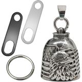 Product Size - motorcycle bell guardian angel size: 1.77 inch height x 1.18 inch diameter, weight: 0.18 LBS. Bell comes with a 1 inch split key ring and 2 pcs 2.67inch motorcycle bell hanger(black, silver)