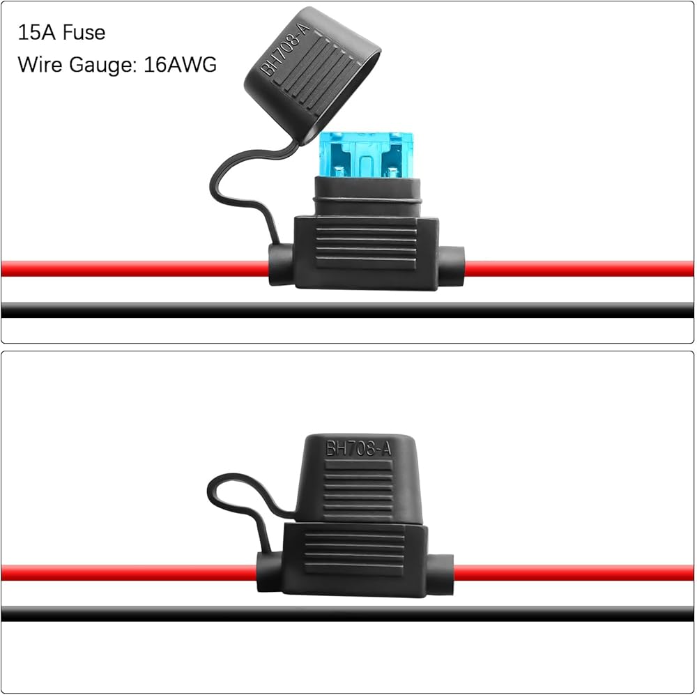 【16AWG Pure Copper Wires & 15A Replaceable Blade Fuse】The 12v socket power outlet come with high quality wires, Wire Gauge: 16 AWG, Length: 16 inches, Material: pure copper wire. and equipped with a standard 15A in-line fuse, protect your device from over-voltage, over-heating, over-load, or short-circuit.