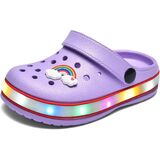 LIGHT UP FUN KIDS CLOGS: High-quality waterproof light up LED strips, no need to connect charging equipment, safe and fun, provide children with walking fun, which is one of the children's favorite garden slippers.