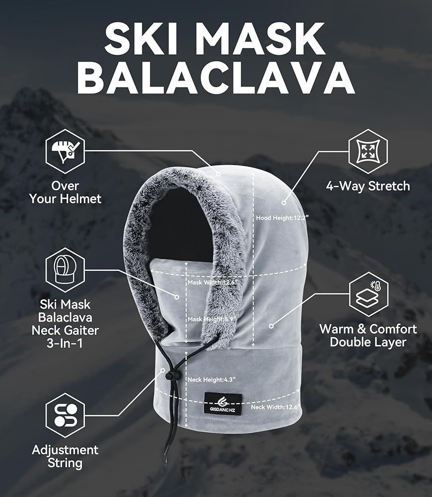 Drawstring Adjustment for Fit: both face mask and over helmet hood of this balaclava face covering feature drawstrings to bring you snug fit. Always find your customized comfort in cold weather gear.