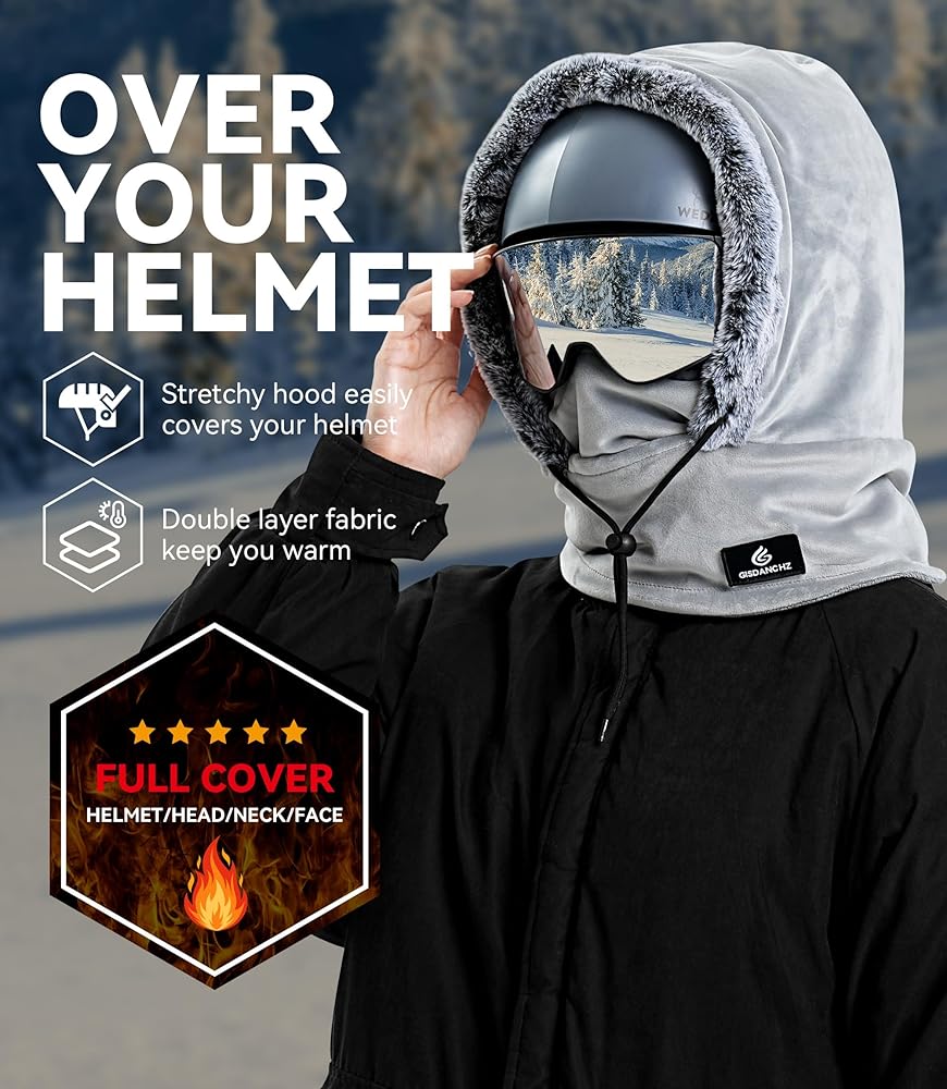 Ultimate Coverage: this winter hat offers a seamless covering for your helmet, head, face, and neck. This helmet hood ski mask provides more warmth against the snow and wind than a hat or neck gaiter alone.