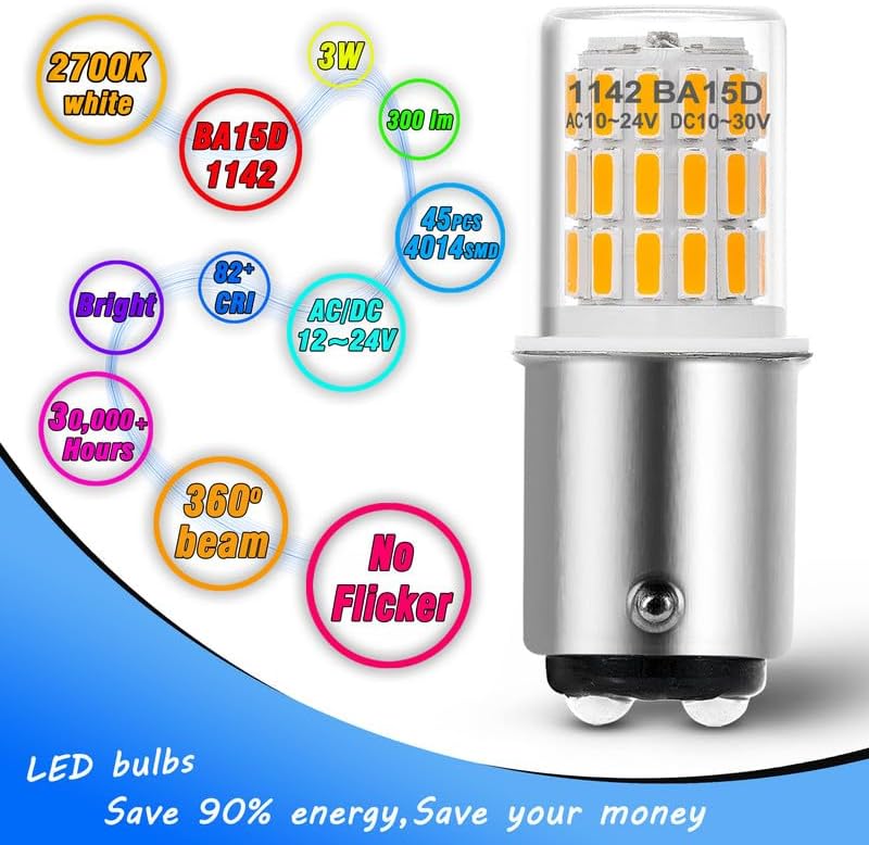 Wide Voltage Compatibility: Low voltage range AC10-24V to DC10-30V, durable and non-fading brilliant beams. Good vibration resistance and stable emitting, suitable for any low-voltage fixture on the BA15S base