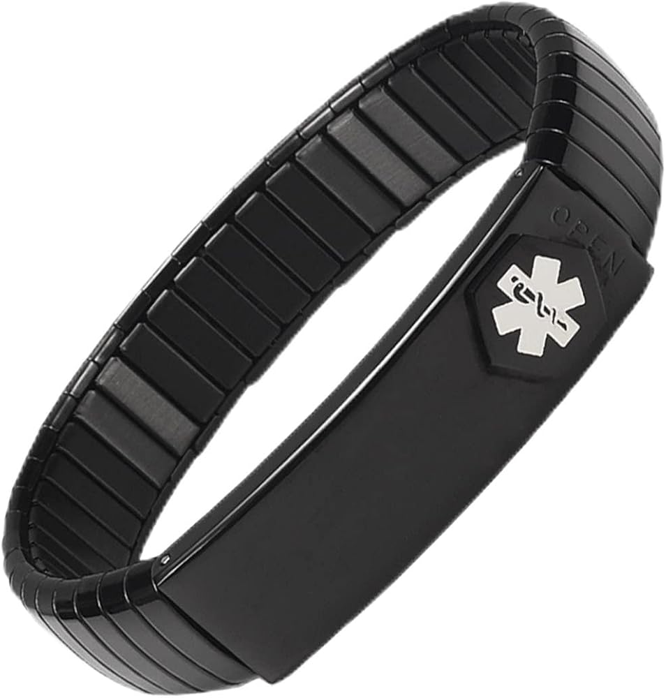 Medical Alert Bracelet for Men Women, Stainless Steel Personalized Adjustable Elastic Medical ID Bracelet for Diabetes, Allergies, Epilepsy, Penicillin, Writeable Cards