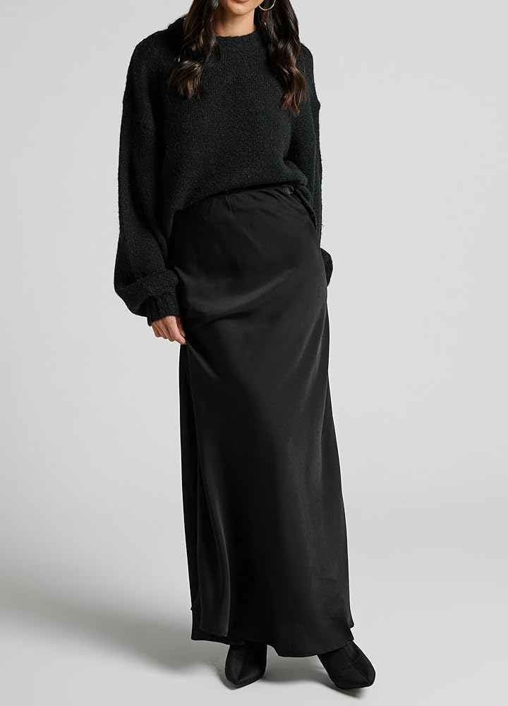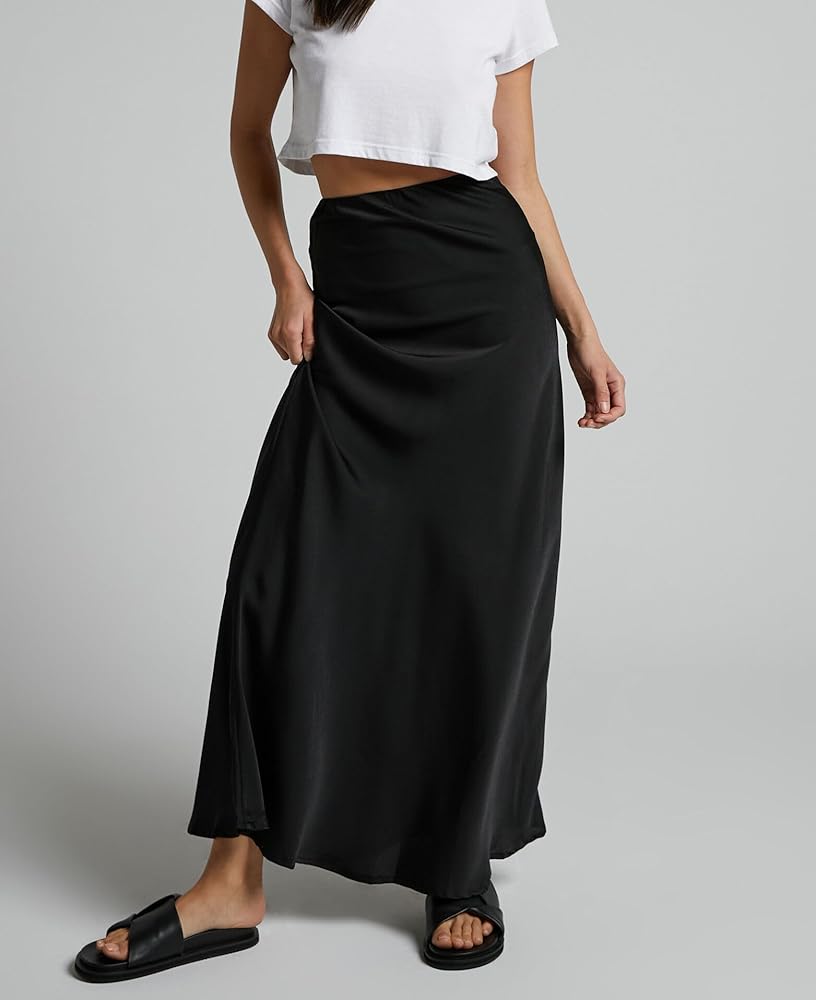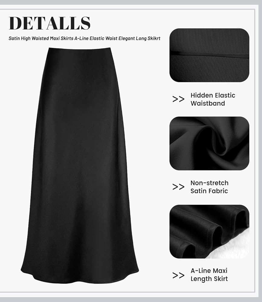 Features: The maxi skirt features satin silky fabric, A-Line hem, high waist, hidden elastic waistband, suitable for different waist sizes, high waist maxi long length makes the legs appear more slender.