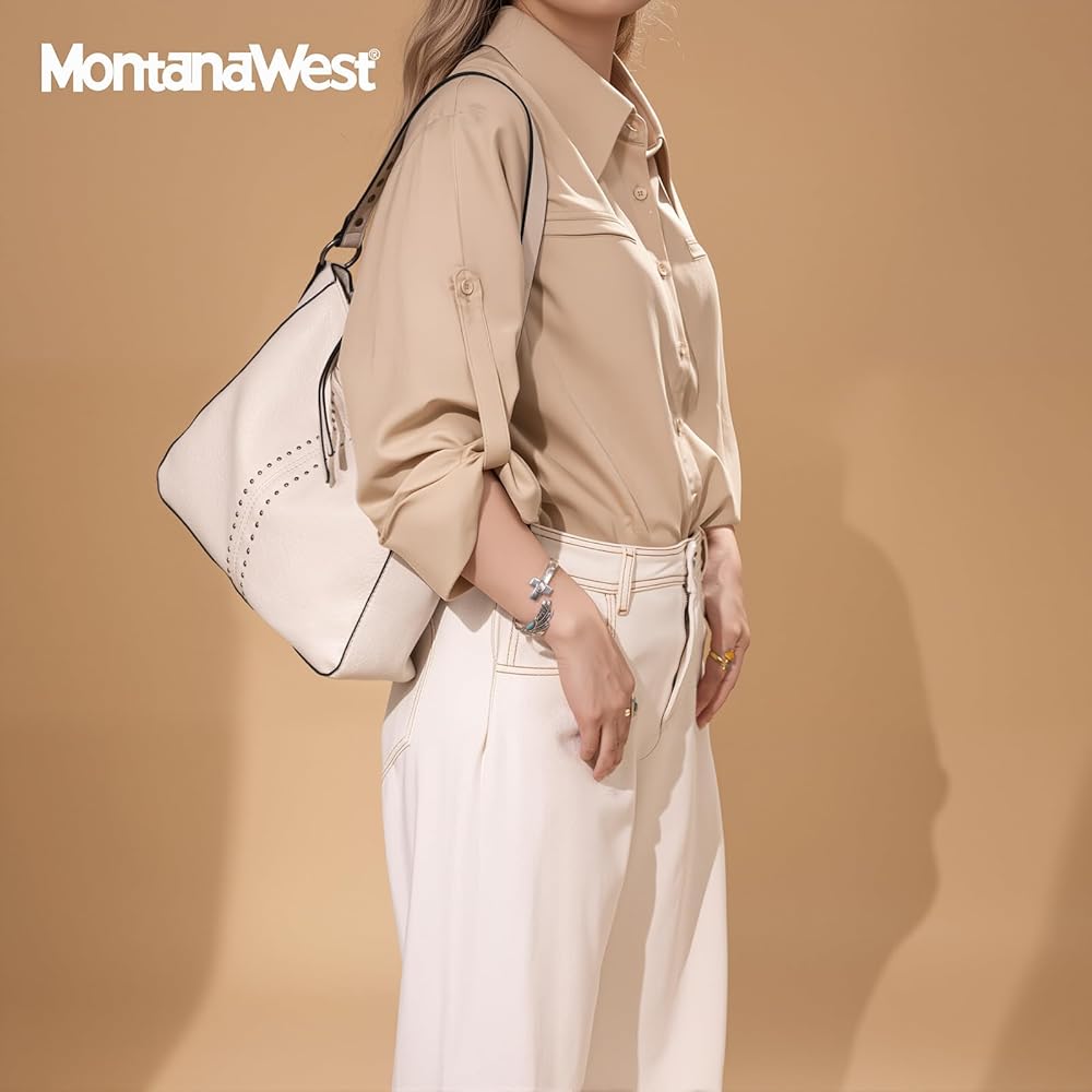 Stylish Hobo Bags for Women: The Montana West Hobo Purse is crafted from PU leather with a durable lining and a chic metal stud design, offering both style and durability in this must-have shoulder bag.