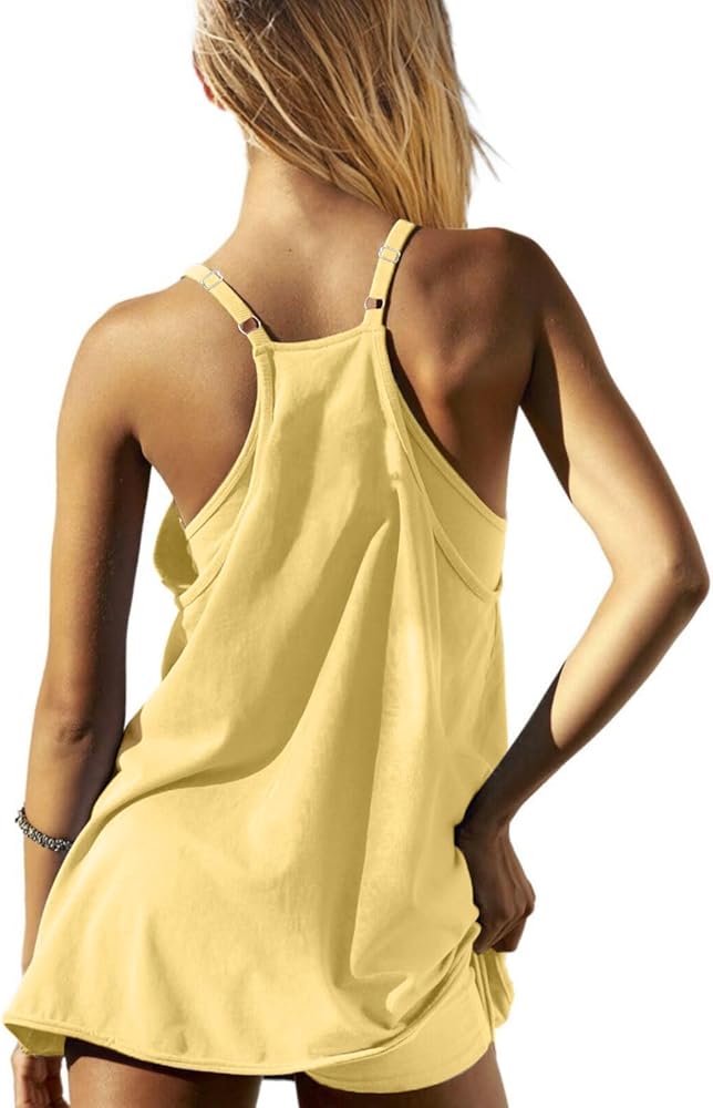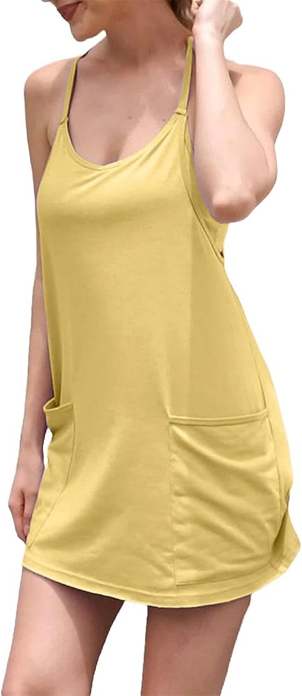 UNIANKIYA Womens Workout Romper Dress with Shorts Underneath Sleeveless Spaghetti Straps Athletic Outfits Casual Vacation