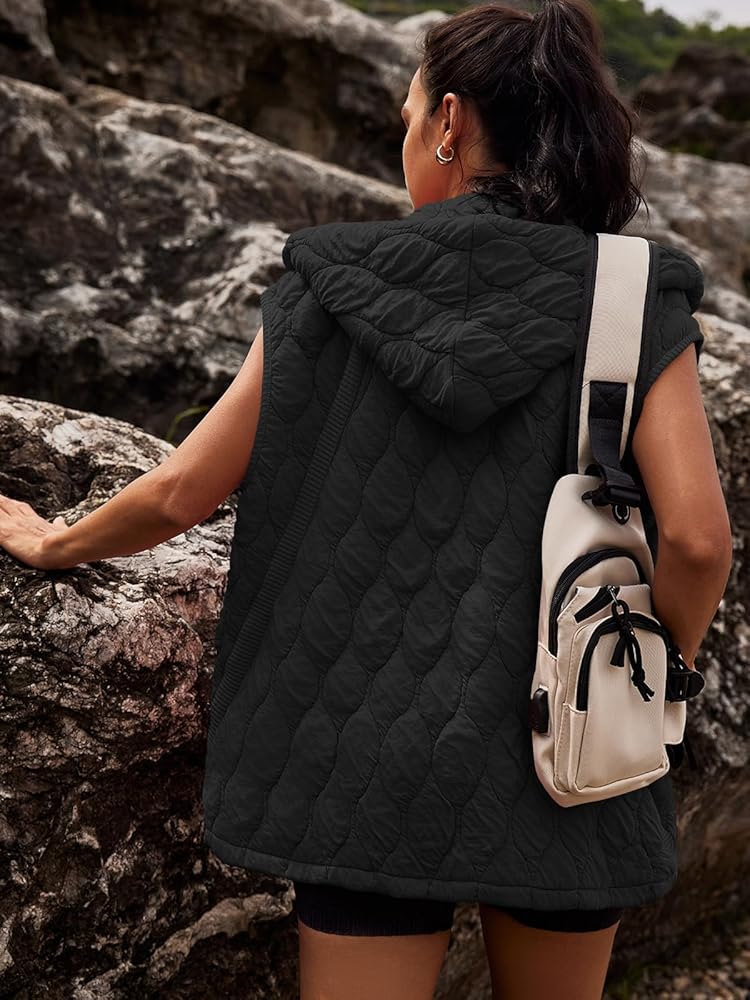 Features: With a hooded design and 2 side pockets, our oversized vest features a classic zip-front silhouette with exposed seaming for added dimension, it's designed to fit oversized for an effortless, relaxed look