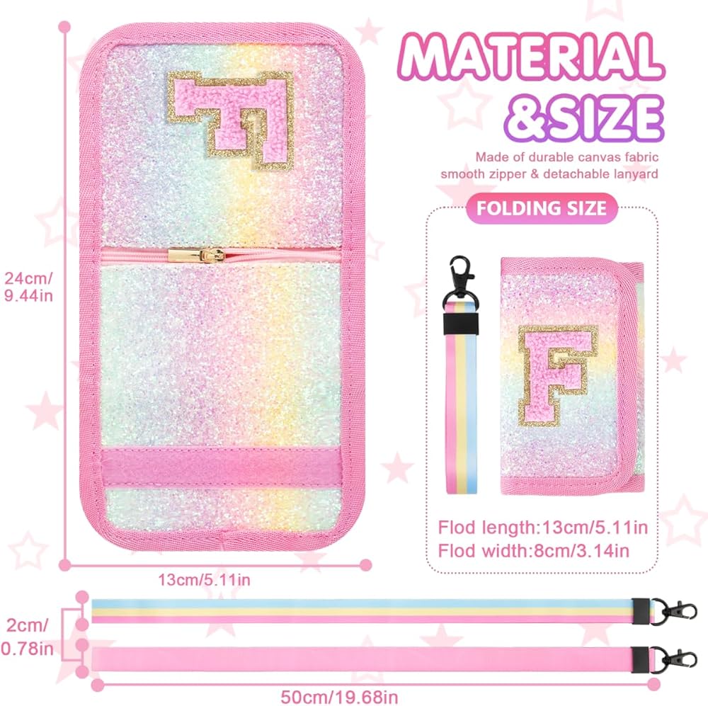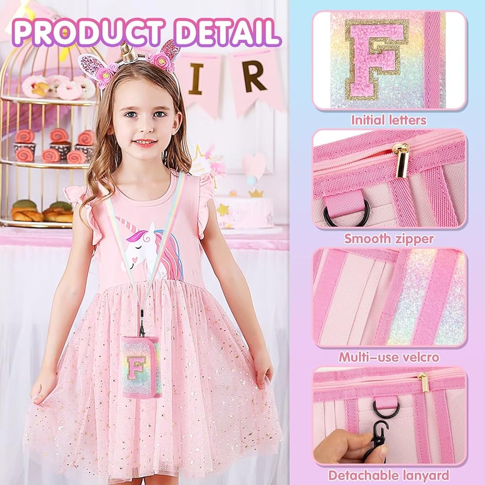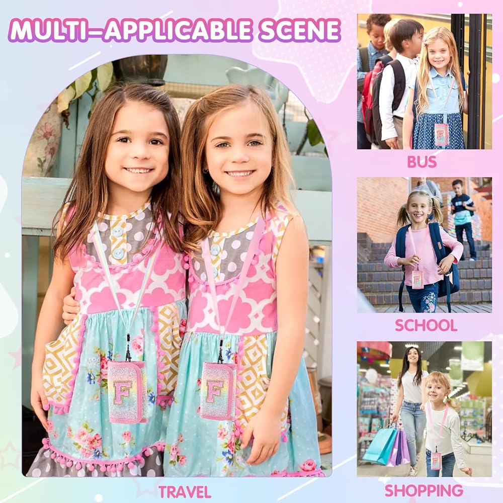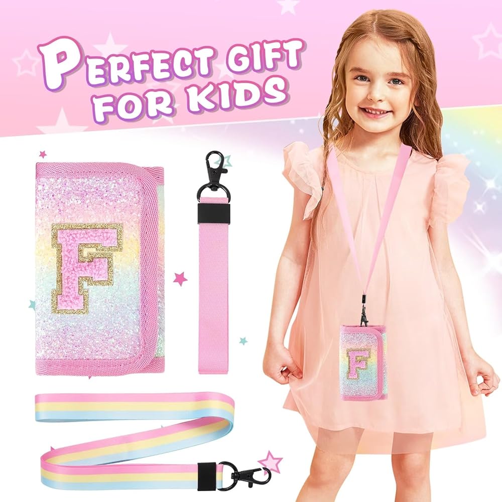 Size&Packing Included: Package with 1*wallet, 1*pink lanyard, 1*rainbow lanyard. Unfolded size of the Trifold girls wallet is 9.4*5.1in, suitable for 5-7, 8-10 and 10-12 years old children, perfect for hanging around the neck, carrying in handbags, schoolbags or pockets, it's a reliable companion for kids to show their maturity and independence.