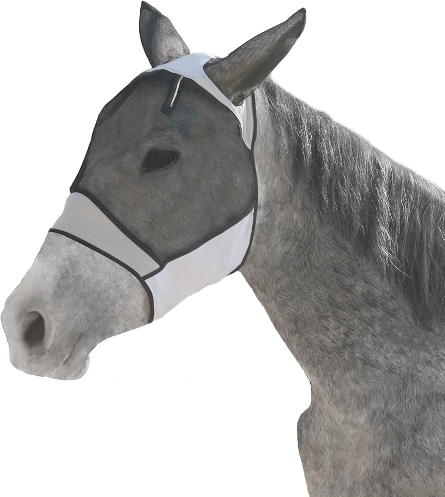 Horse Fly Mask,Fly Masks for Horses,Fly Masks for Horses with Ears,Horse Fly Mask with Ears,Fine Mesh Fly Mask with Ears,Lycra Fly Mask (Medium, Grey)