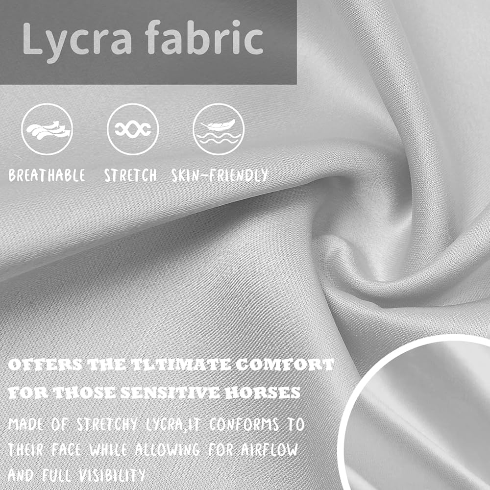 • The fly mask is made of Lycra and mesh. Our lycra horse face mask adopt selected high-elastic stretch fabric.The Lycra is highly resistant to heat, lightweight, durable, and flexible fabric.