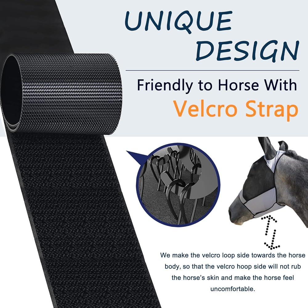 • This fly mask for horse slips easily on and off the horses head for a secure and comfortable fit,with velcro strap can easier adjust the size on horse nose and neck parts, and the unfolded design is easier to put on horses.