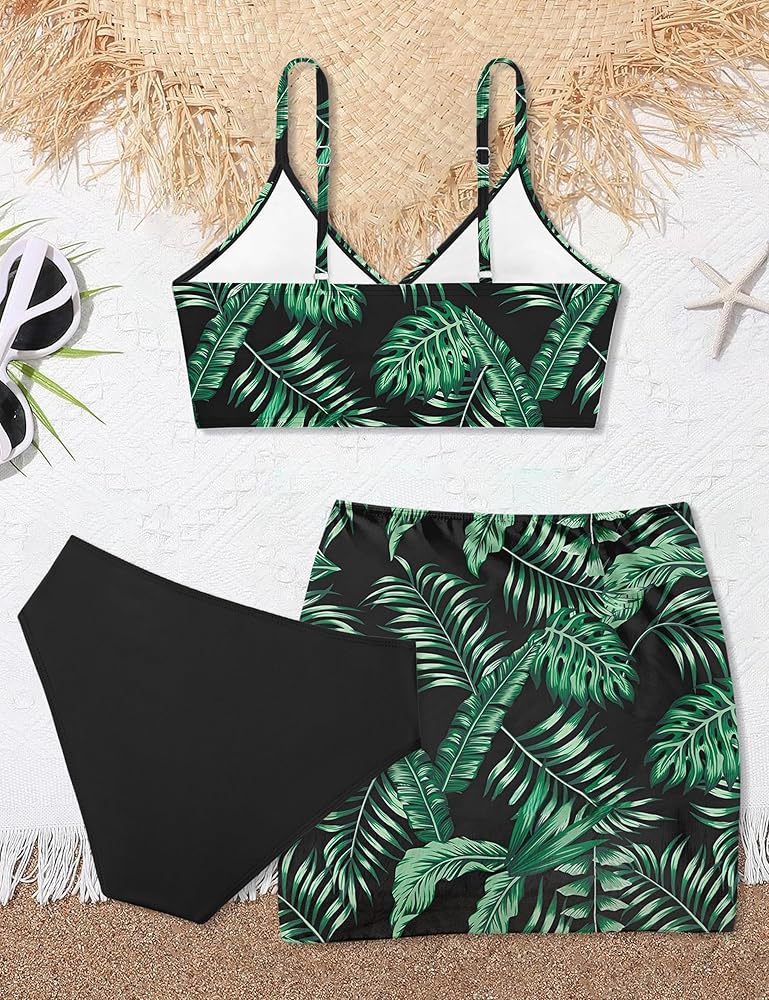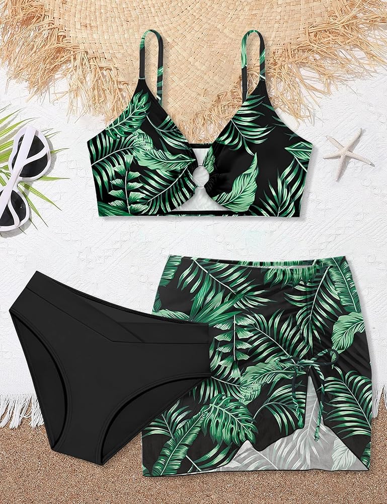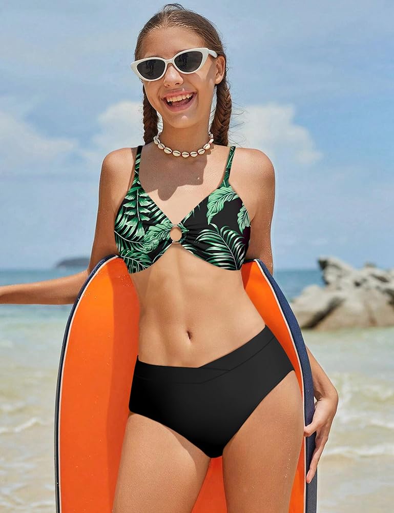 🌞SIZE DESCRIPTION: This swimsuits for girls is suitable for girls aged 9-16. The 3-piece girl swimsuit is suitable for girls size 9-10, 10-12, 12-14 and 14-16. This girls bikini set includes: 1 * Bikini Top + 1 * Solid Bottom + 1 * Cover Up Beach Skirt.