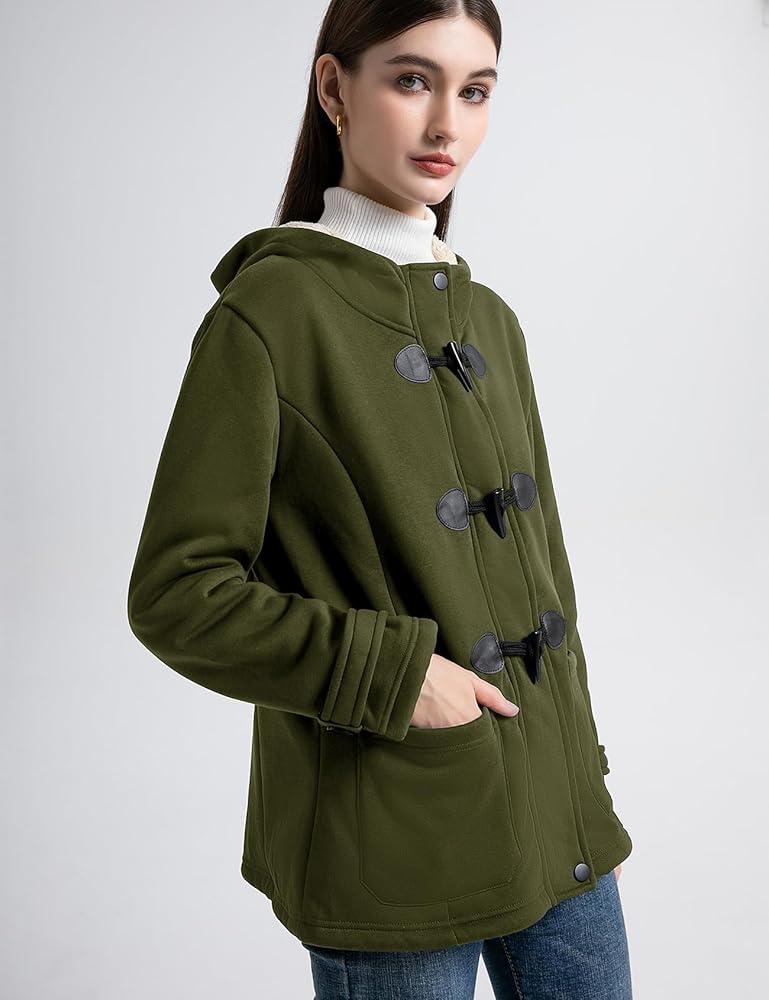 【Warm&Comfort】Looking for a warm, cozy yet comfy jacket? This hoodie jacket checks all those boxes! Fully sherpa lined fleece jackets women, designed for lightweight warmth, women sherpa coat, warm not too heavy, fleece lined toggle duffle coat, great for the fall, spring and mild winter