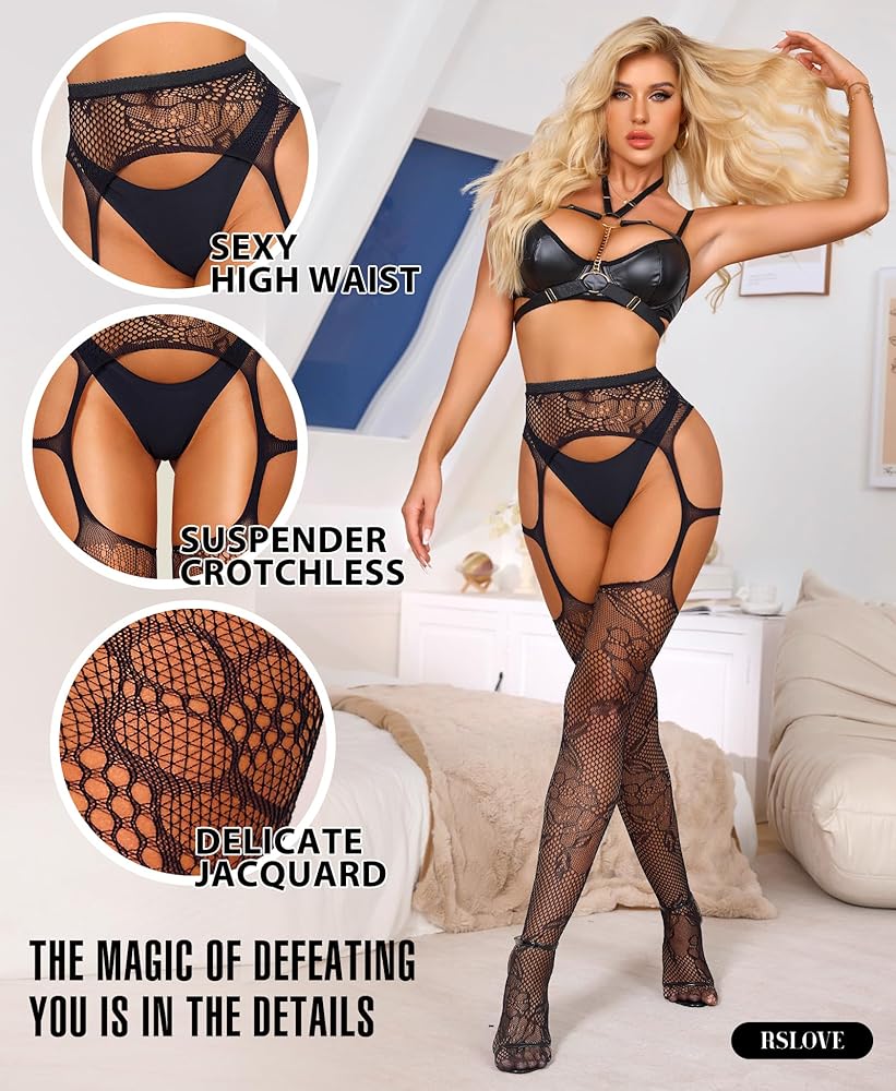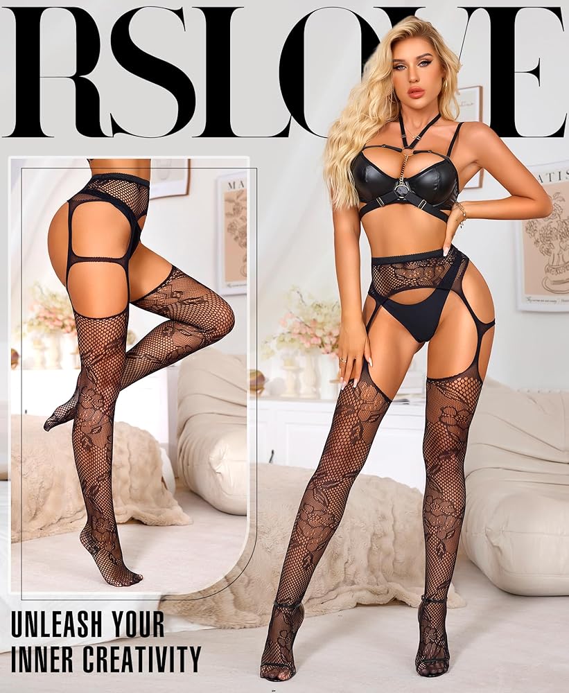 Multipurpose: Elevate your wardrobe with these versatile and alluring suspender pantyhose, a seductive addition that radiates elegance and sex appeal. Whether for daily wear or special occasions like Halloween, Valentine's Day, Christmas, or a night of playful cosplay, these thigh high fishnet stockings are the epitome of sophistication and allure, enhancing your every move with a touch of eroticism and style
