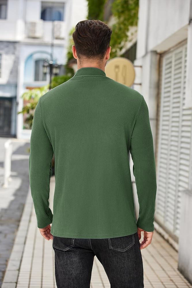 【MORE FEATURES】The men long sleeve turtleneck sweater featuring a classic mock neck design, turtleneck style, long sleeve, ribbed hem and cuffs. It's great to stay warm if you're looking for a base layer, but because it's a soft and sharp looking ribbed fabric, it would look good as a top layer too.