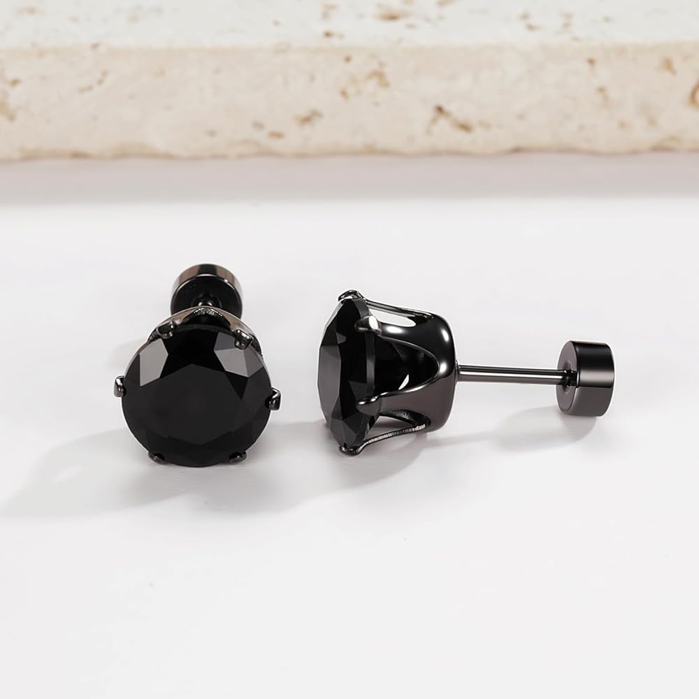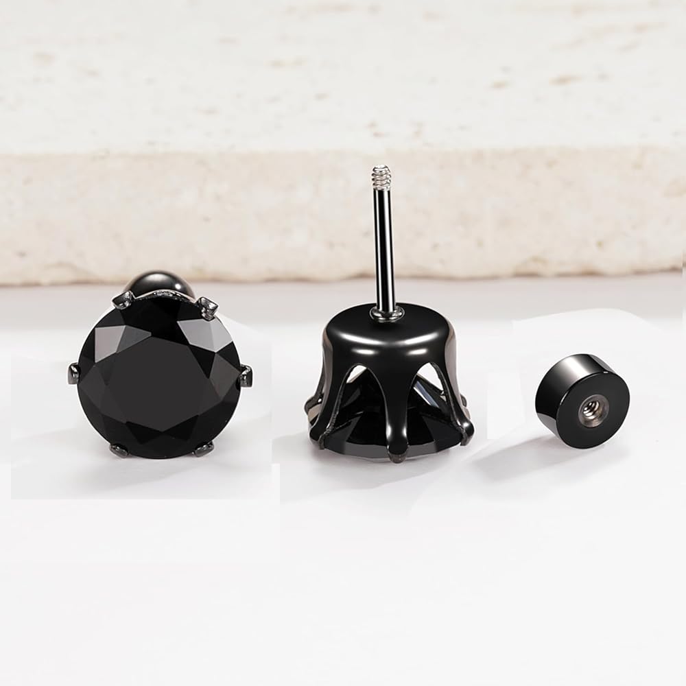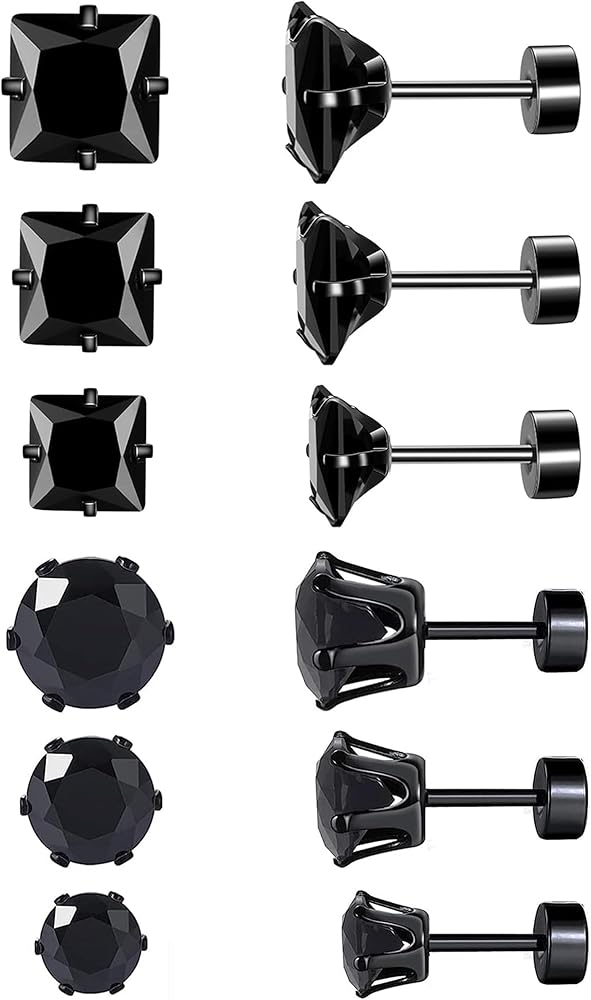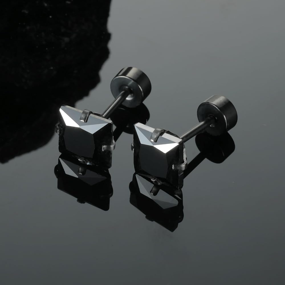 - Screw Back Earrings Pack --3/5/7mm Square Round CZ ( 6 Pairs )