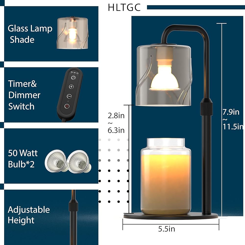 Candle Warmer Lamp with Timer Dimmer, with 2 Bulbs,Adjustable Height,Mothers Day Gifts for Mom,Birthday Gifts for Women,for Yankee Jars,for Room Home Decor (Black)