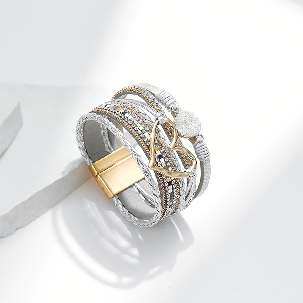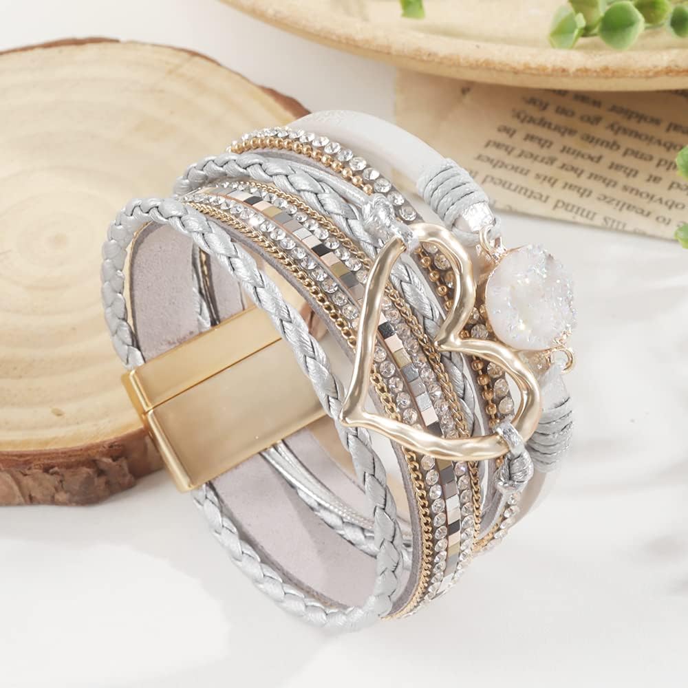 choice of all Heart Bracelets for Women Leather Warp Bracelets Boho Bracelets for Women Layered Heart Leather Chunky Bracelets Stack Trendy Jewelry Valentines Bracelets for Women Gifts