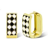 Package includes one pair of small gold geometric rectangular hoop earrings.