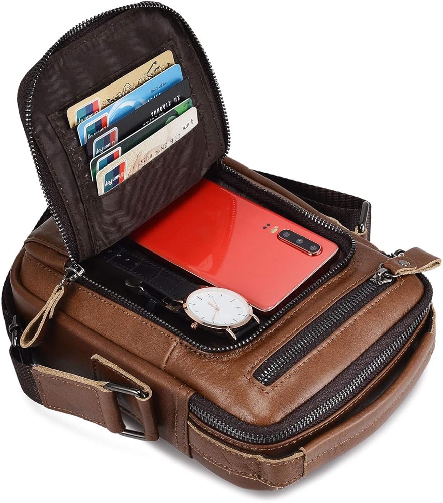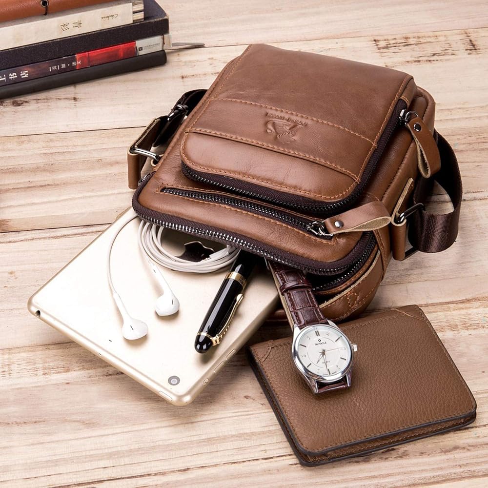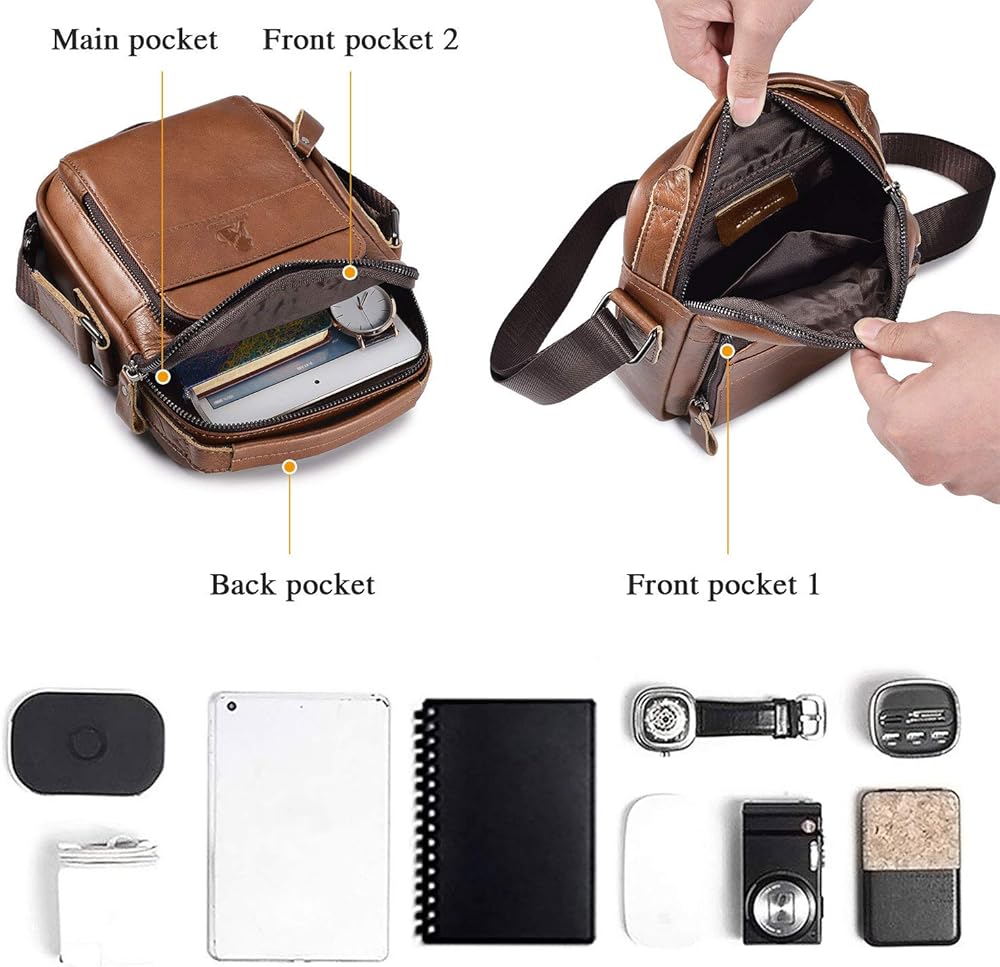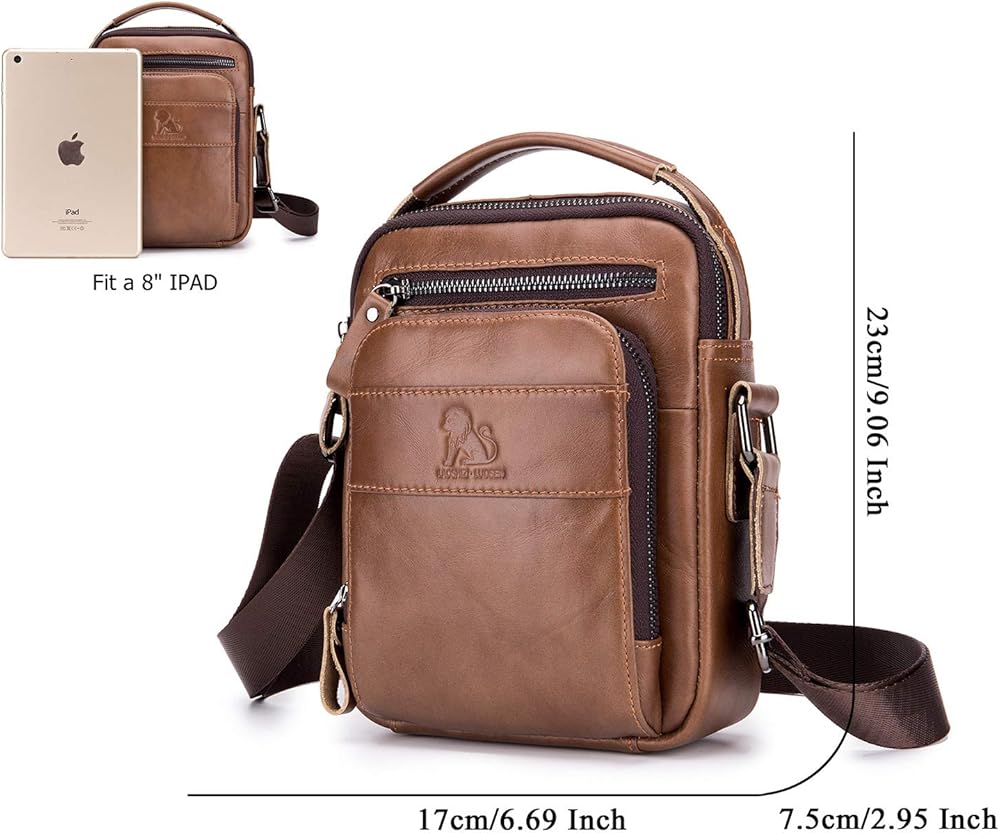 Designed for comfort: This man purse for men is well constructed and comfortable to carry. Organizers enough place for carrying up your iPad, cell phone, keys, short pens, flashlight, chargers, power bank, receipts. This small leather messenger bag for men is vintage and fashion, brings you more fashion sense and happiness to carry it all the time.