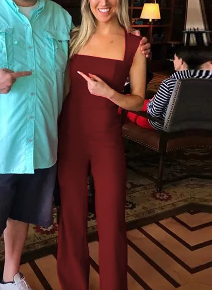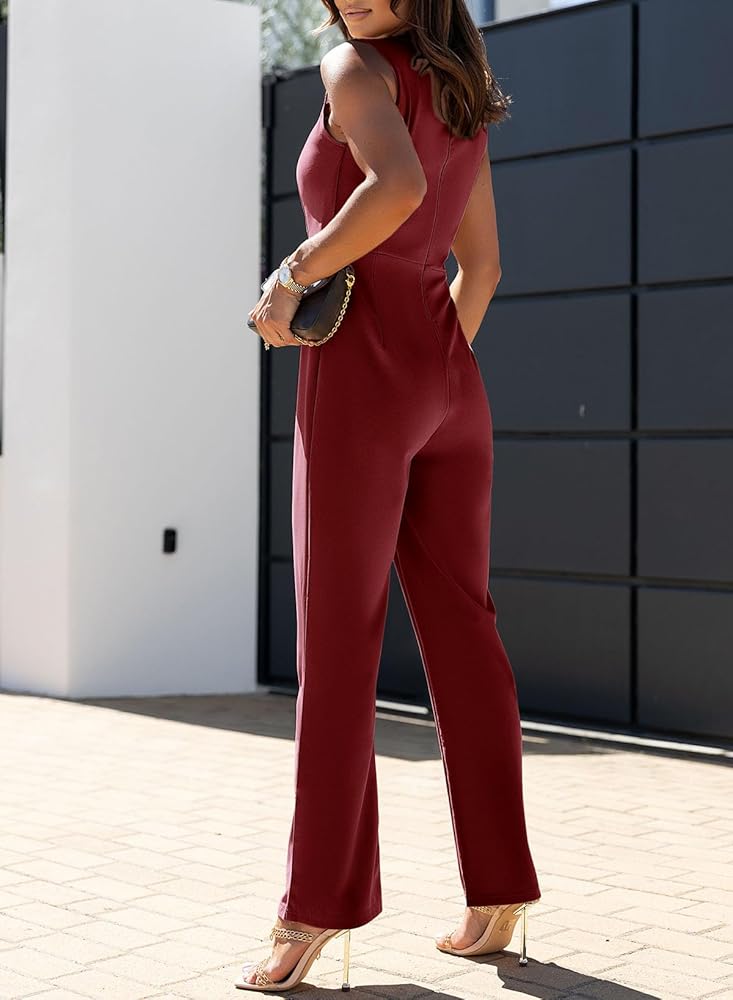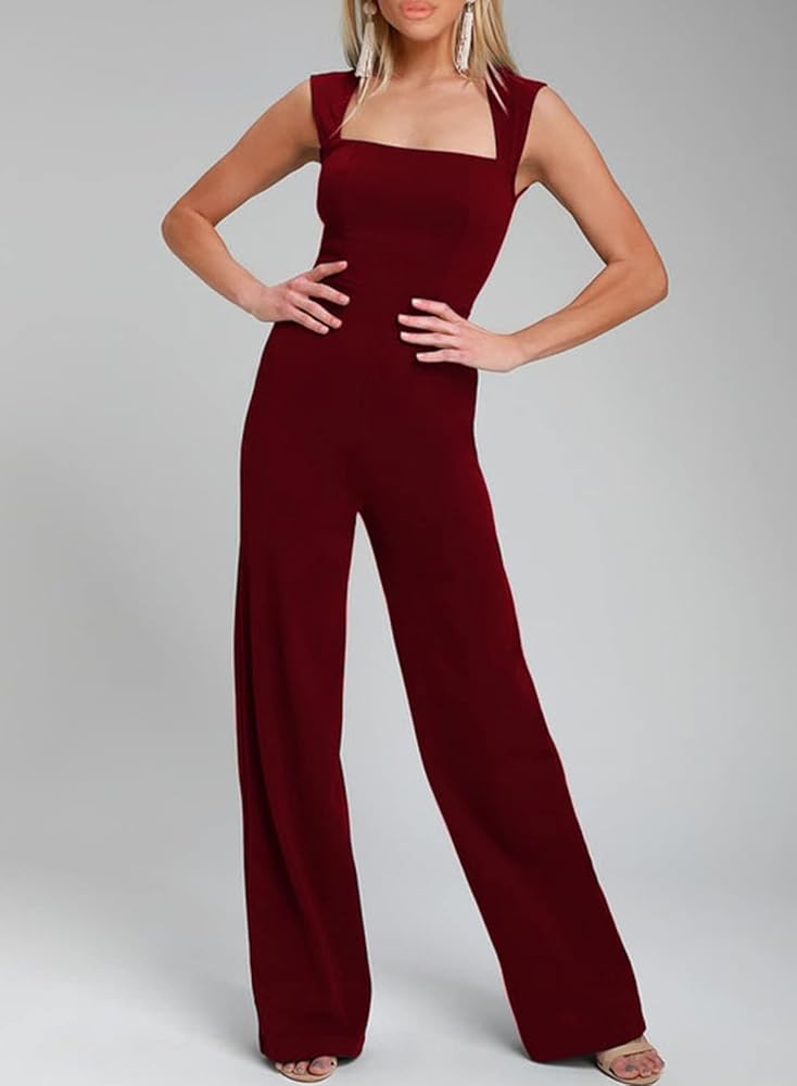 Features: Womens jumpsuit with sleeveless, square neck, solid color, high waisted,back zipper, wide leg pants rompes for women.