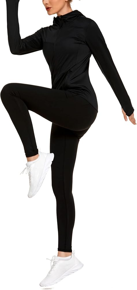 【Hoodie & Thumb Holes Desgin】Women's sun shirts with hood give you more neck protection. The thumb holes keep the long sleeves in place and give extra coverage for sun protection.