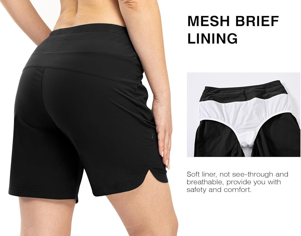 Womens swim shorts with soft liner, not see-through and breathable, providing extra safety and comfort for all your water activities. V-slits increase range of motion and prevent leg charfing.