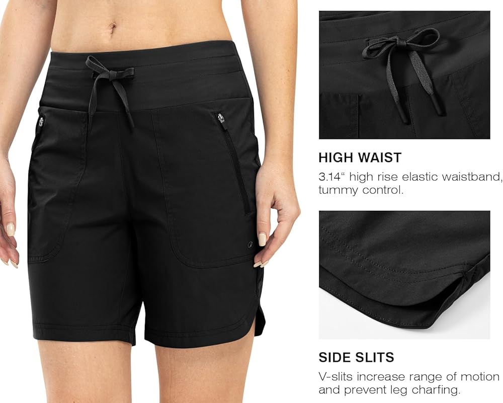 HIGH WAISTED DESIGN: 3.14" width high rise elastic waistband provides full coverage and belly control, and the adjustable outside drawstring ensures the shorts don't slip off when wet.