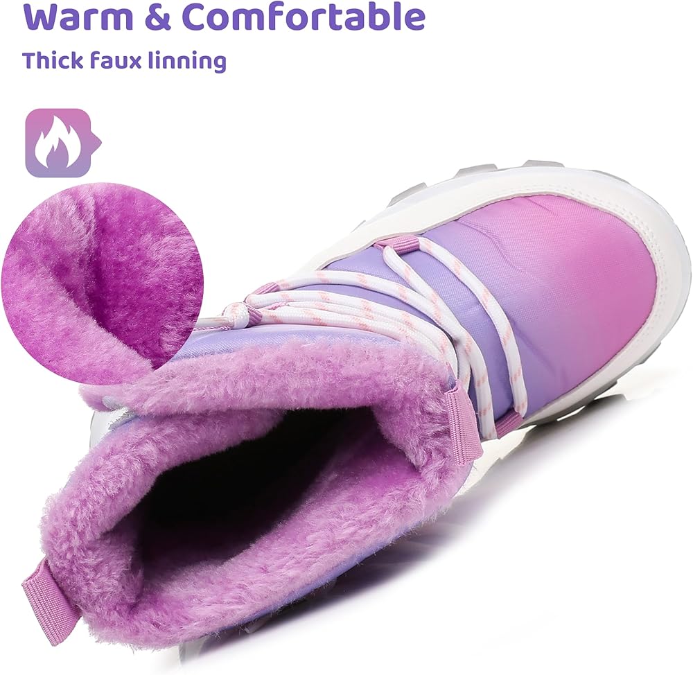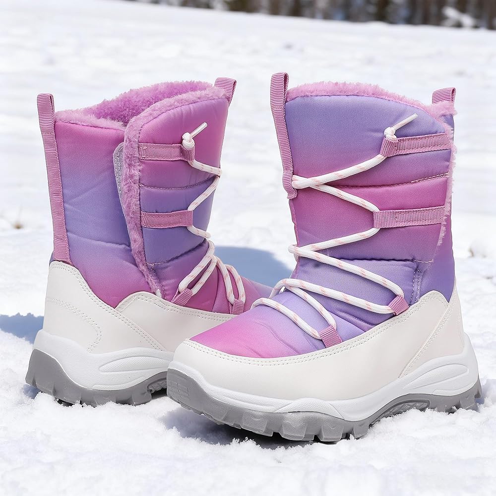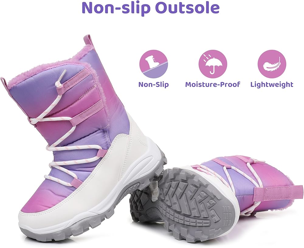 Slip-Resistant: The rubber sole with an slip-resistant design offers a strong grip to prevent your kids from slipping on the wet ground or slippery surfaces, and your children can enjoy winter outdoor activities happily.