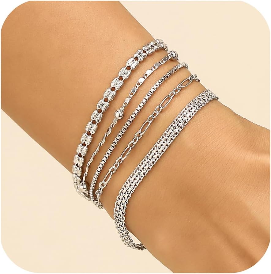 Dainty Gold Bracelets for Women: 5PCS Trendy Gold bracelets set are stackable. Each gold chain bracelet can be worn separately or wear them together, or in combination with other layered bracelets to create their own style.
