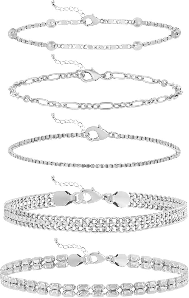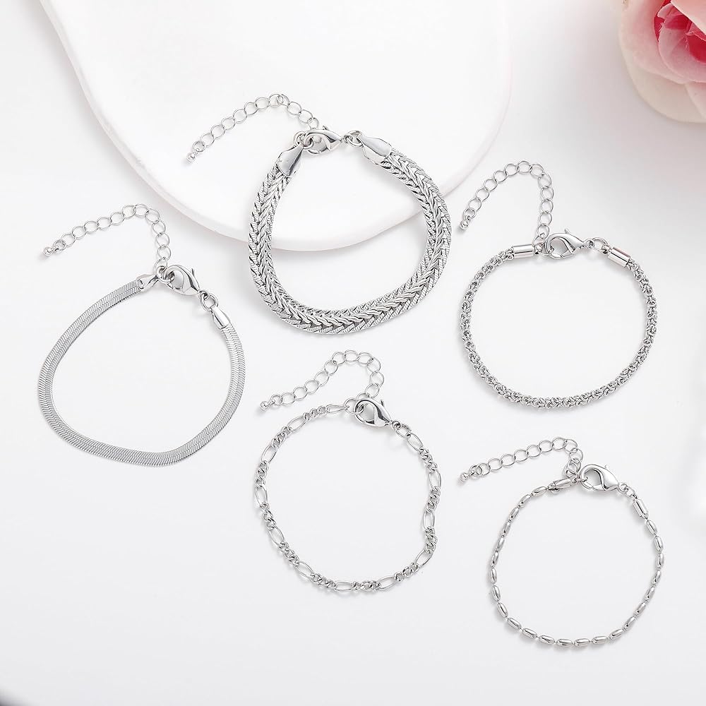 Trendy Bracelet Set: You will receive 5 bracelets in individual styles. Our bracelets include chunkycuban chain, rope chain, paperclip chain, figaro chain and satellite mirror chain. You can combine and match them as your like.
