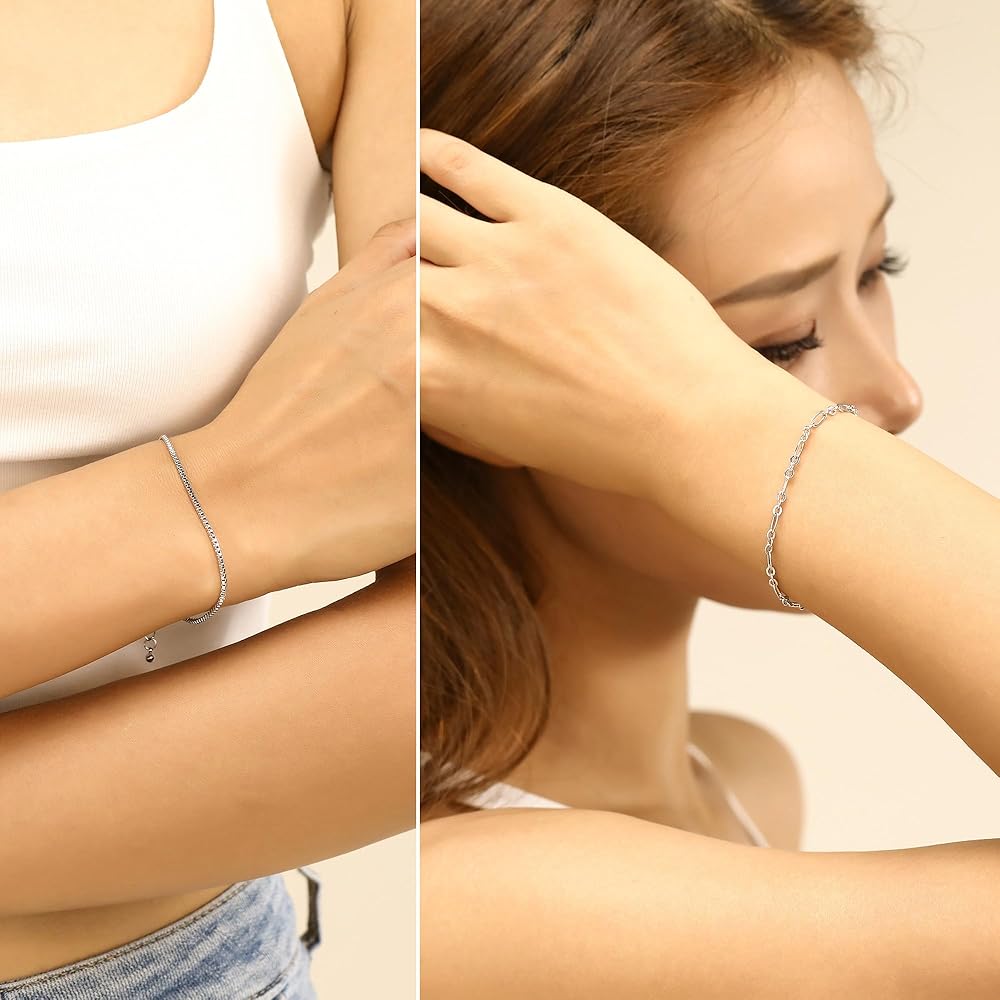 Comfortable Materail: Our dainty gold/silver bracelets set looks expensive and will be exceeded your expectations, Each gold chain is well made and a durable lobster clasp, the bracelets for women trendy won't take any burden for your wrist, as it's shiny finish,waterproof and lightweight.
