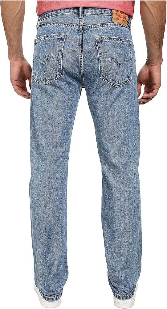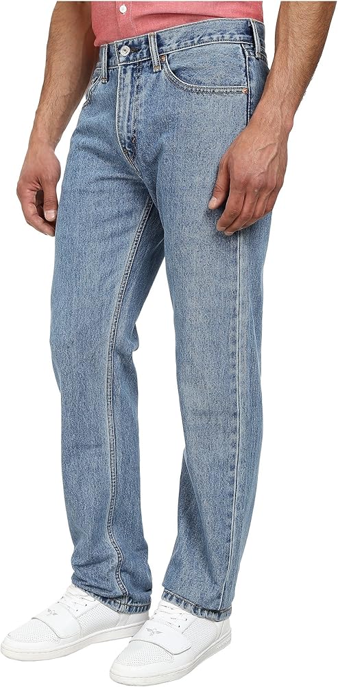 The classic Levi's Mens 505 Regular look that's always in style. 505 jeans fit comfortably straight through the seat, thigh and leg. Straight-cut waistband sits at the waist. Sits evenly on both the front and back. Classic, five-pocket design. Branding-stamped rivet and shank button-detailing. "Levi's" or trademark-branded red tab at back pocket. Leather brand patch at back waist. Signature arcuate stitch at back pockets. Belt-loop waistband. Zip fly and button closure. 100% cotton except on noted washes. Nail Loop Knot, Birdman, Clif, Goldentop, Hawker, Stonewash Stretch: 99% cotton, 1% elastane. Afrobeat Stretch, Caraway Slub Twill 1, Cash, Moss Black Overdye, Navarro: 98% cotton, 2% elastane. Flying Bird: 99% cotton, 1% elastane. Kansas: 94% cotton, 5% polyester, 1% elastane. Roth: 88% cotton, 11% polyester, 1% elastane. Machine wash cold, tumble dry low.
