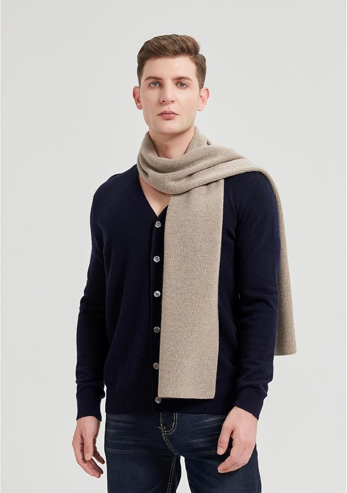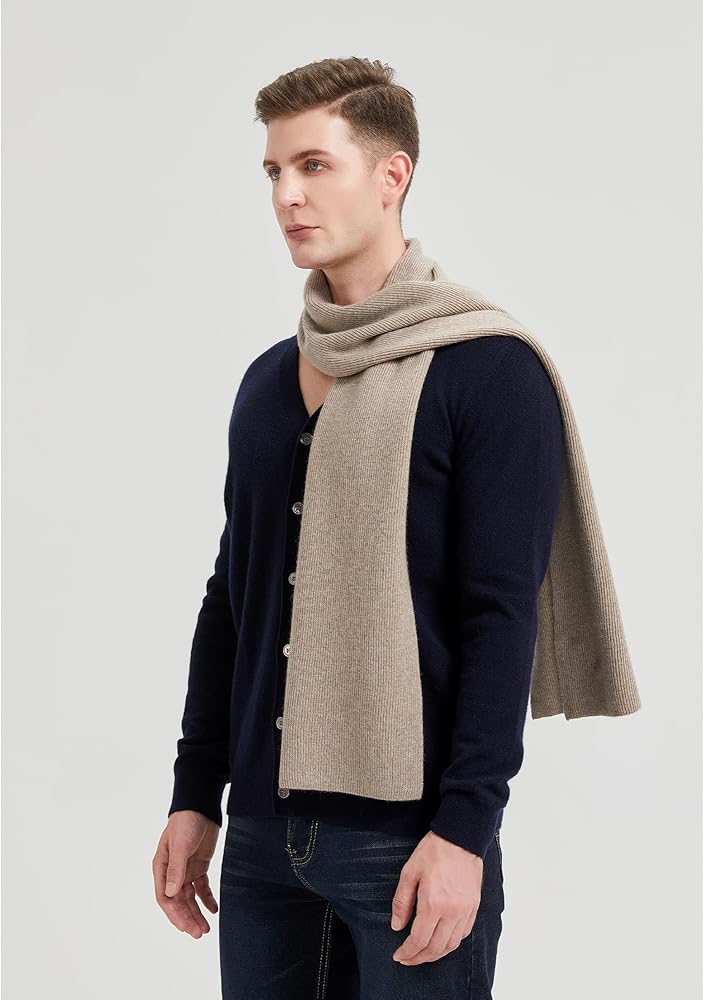 HIGH-END CRAFTSMANSHIP: We adopt super long cashmere yarn from Alashan, 2-ply26s yarn knitted in 12 gauge for a firm feel. the scarf adopts a natural ribbed design. Durable and not deformed. Advanced middle tones, very easy to match with different coats, more fashionable