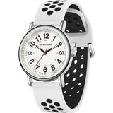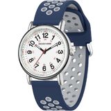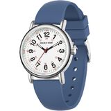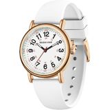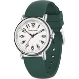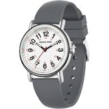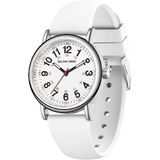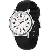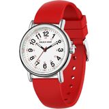 SUPER EASY TO READ: white dial with 12 & 24 hour markers and Luminous Face. Japanese quartz movement with highly visible red second hand. Case diameter:38 mm.