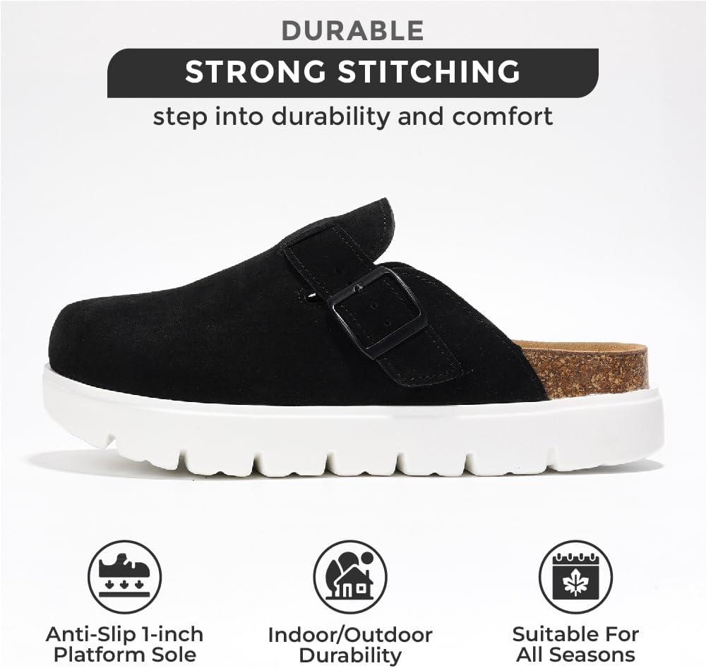 𝗖𝗼𝗿𝗸 𝗙𝗼𝗼𝘁𝗯𝗲𝗱 𝗳𝗼𝗿 𝗡𝗮𝘁𝘂𝗿𝗮𝗹 𝗦𝘂𝗽𝗽𝗼𝗿𝘁: The cork footbed in these platform clogs for women provides natural support by molding to the shape of your feet. Ideal for those seeking womens shoes casual with excellent arch support, they are a blend of style and orthopedic benefits.